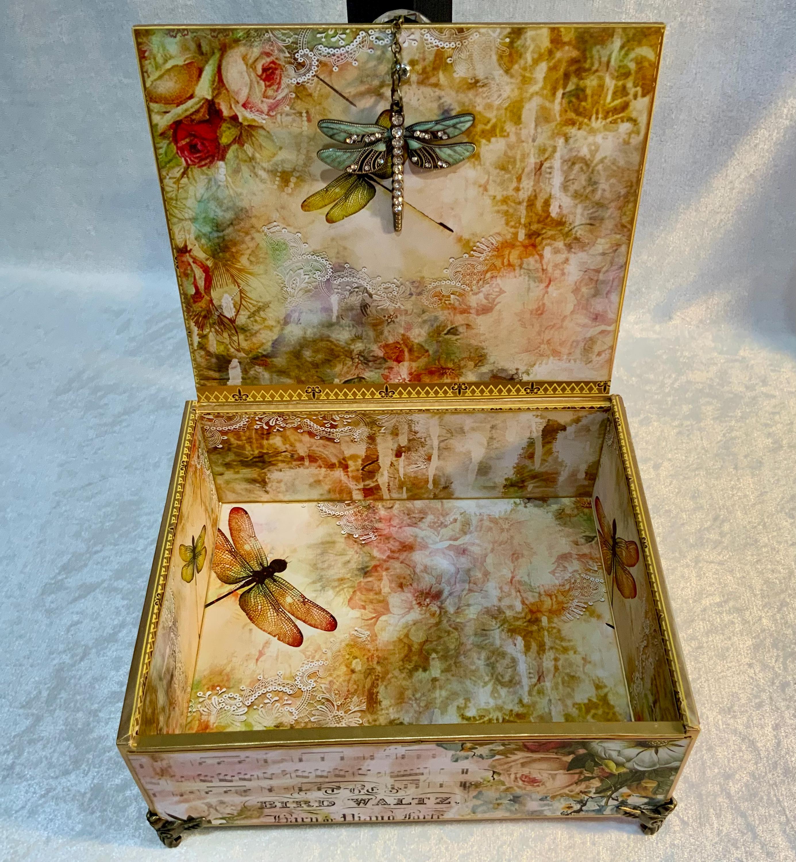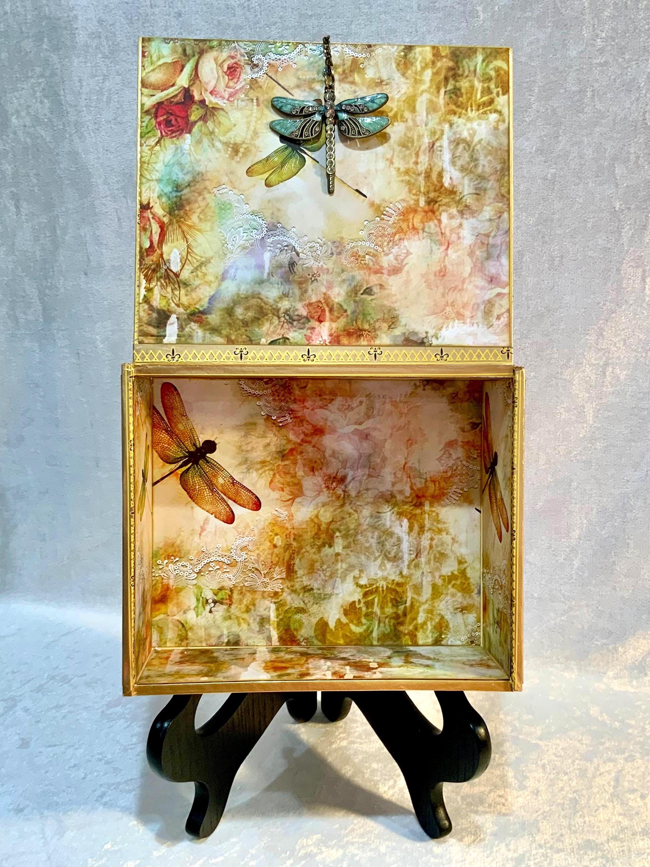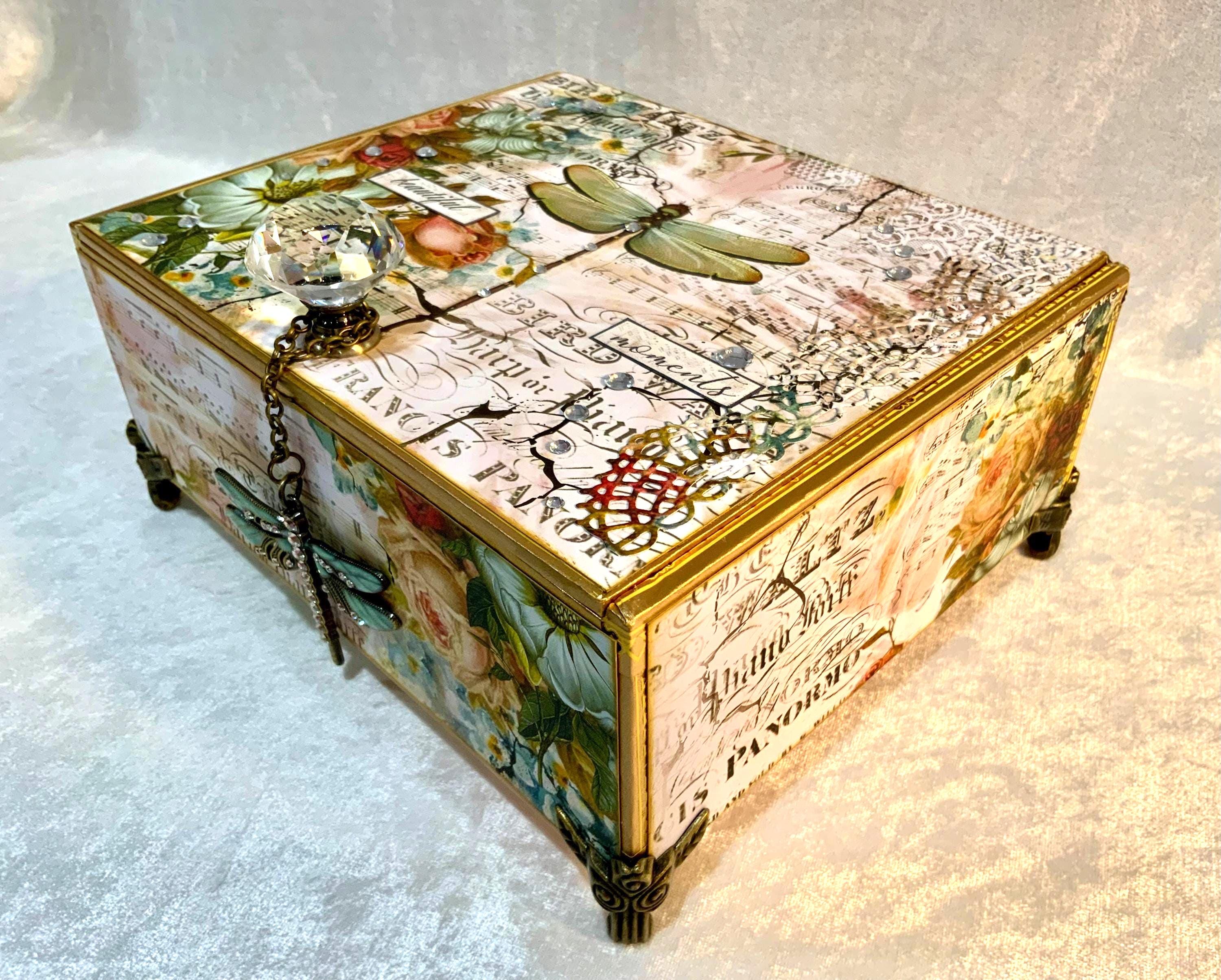 Super impressed by the "Dragonfly" box...felt special opening it...Brings me Joy! Linda makes some of the prettiest of pretty decorative storage boxes out there, you can't go wrong. I am mesmerized by the Dragonfly charm, it sparkles so. Very ethereal + lovely. Linda does customizing and is an excellent artisan with an impressive craft workshop to help make your dreams into reality...simply ask her 😀 Do not delay purchasing a box for yourself or someone else: Perfect gift for a woman/girl. So happy to have this box...so charming!