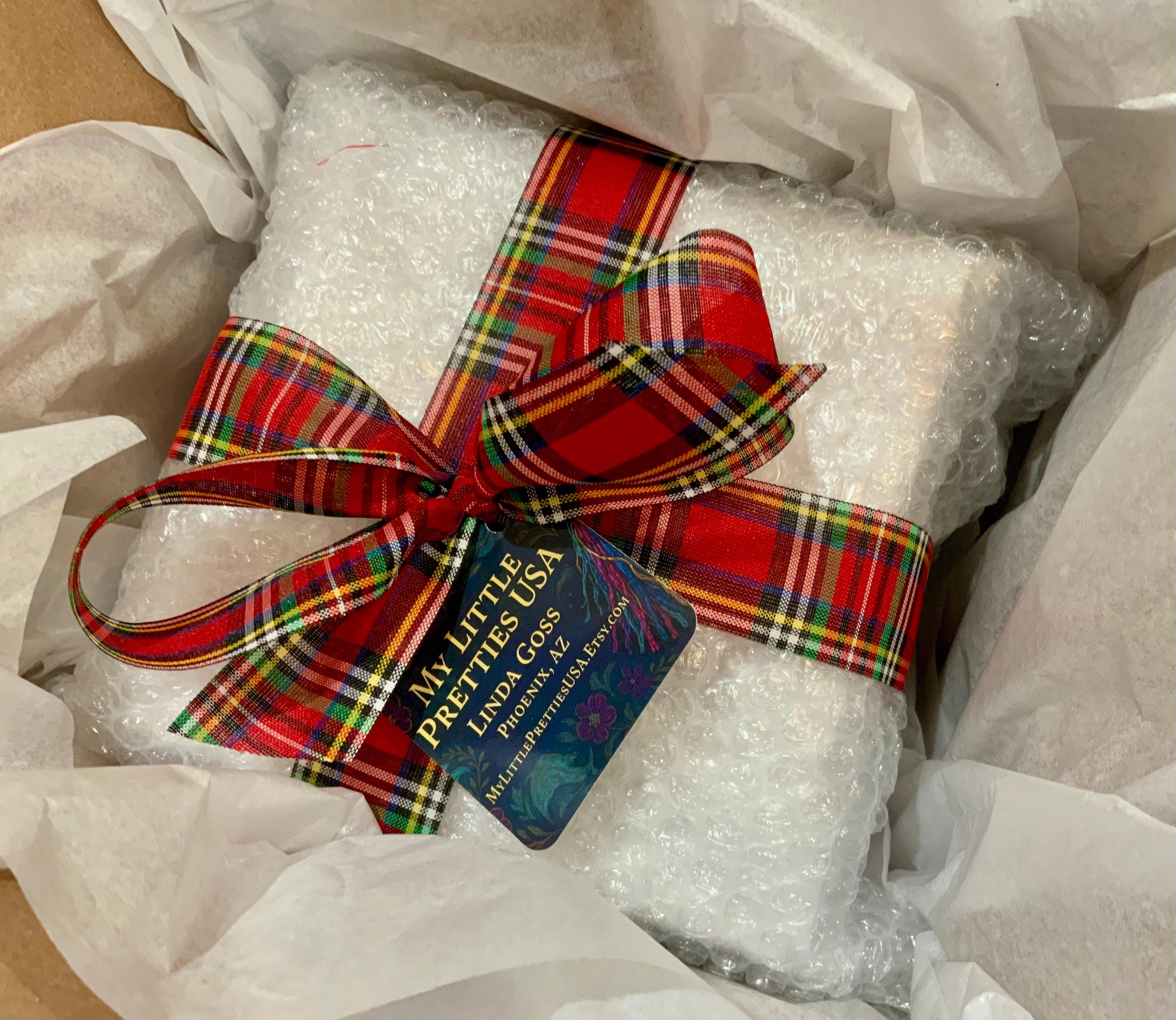 Your order is then placed in a sturdy box and shipped with care. I take pride in every detail, so your unboxing experience is as delightful as the keepsake inside.