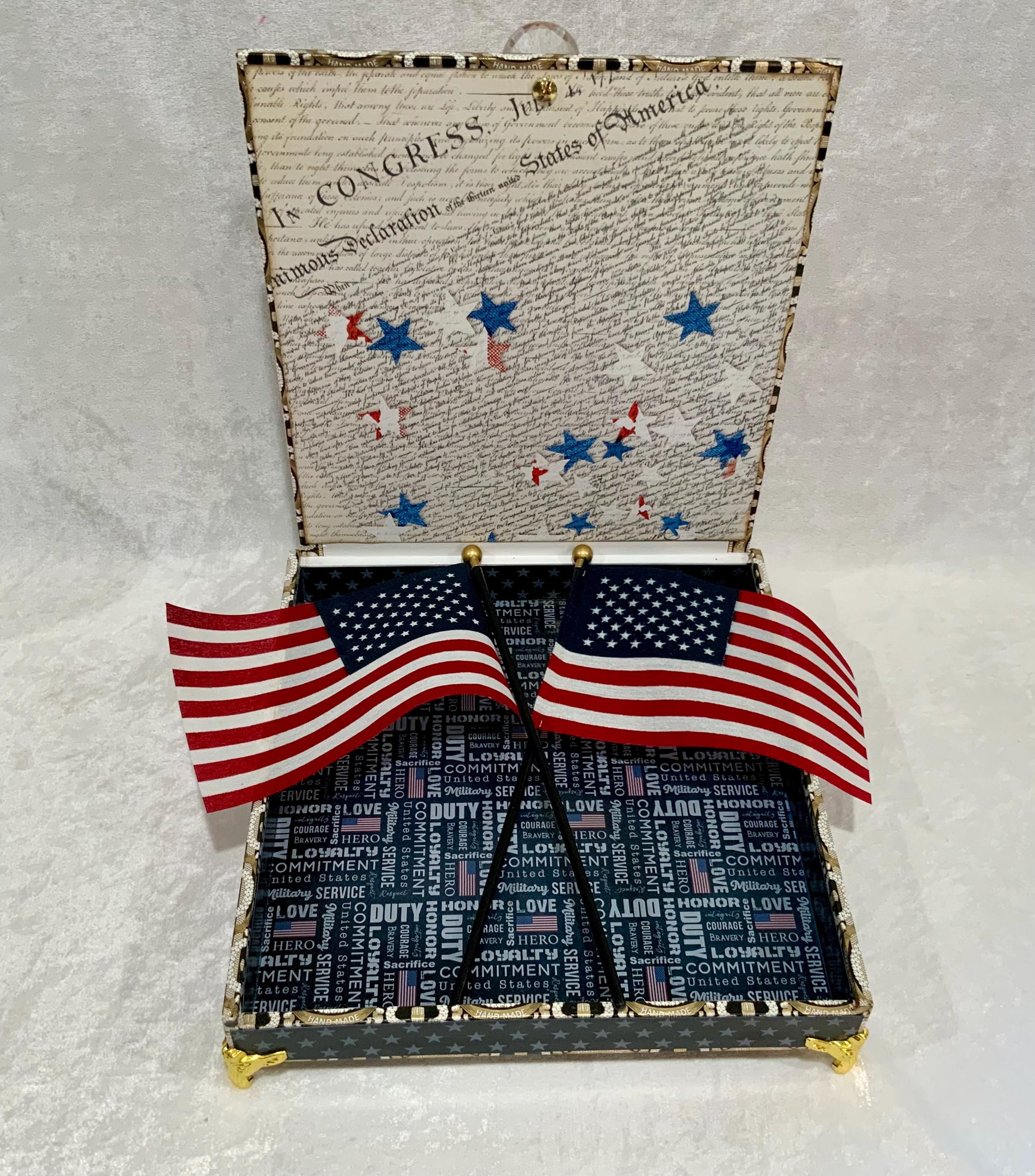 Celebrate American heritage and military service with this handcrafted Patriotic Keepsake Box, created in honor of America’s 250th Anniversary year.