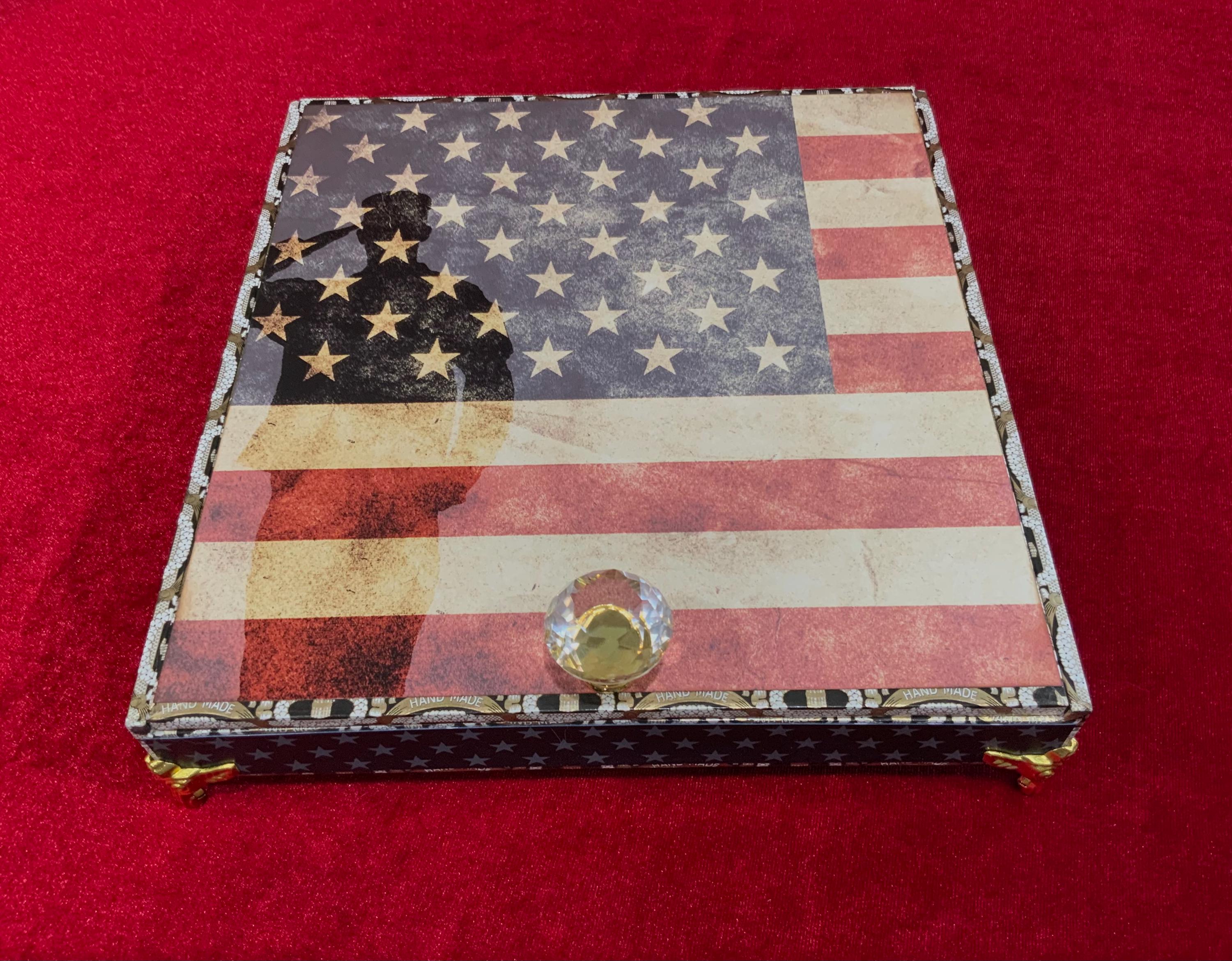 Patriotic Military Keepsake Box – 250th Anniversary American Flag Decorated Cigar Box – Veteran Gift