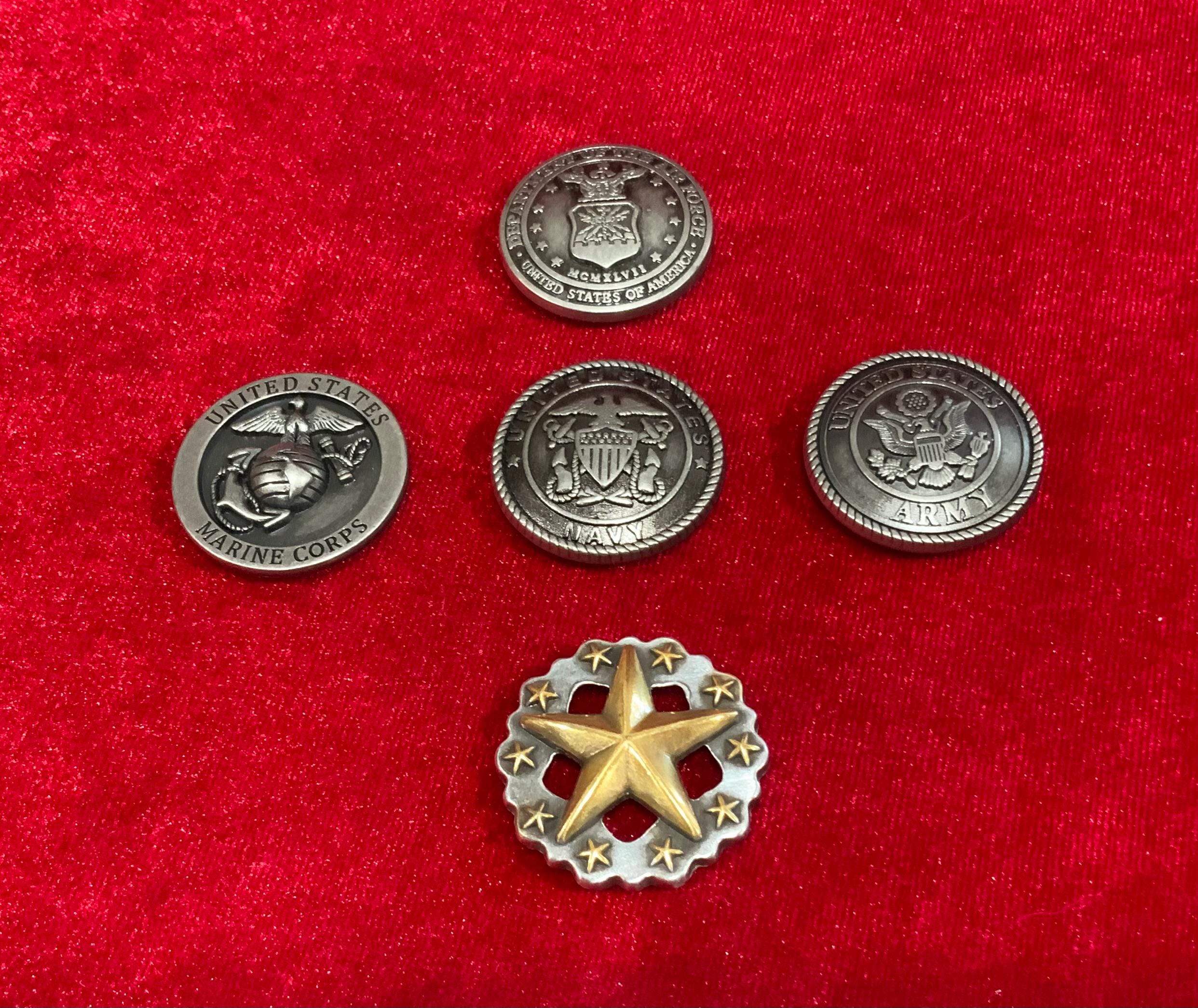 Service branch emblem hardware (Army, Navy, Marines, or Air Force) is available as an upgrade option.