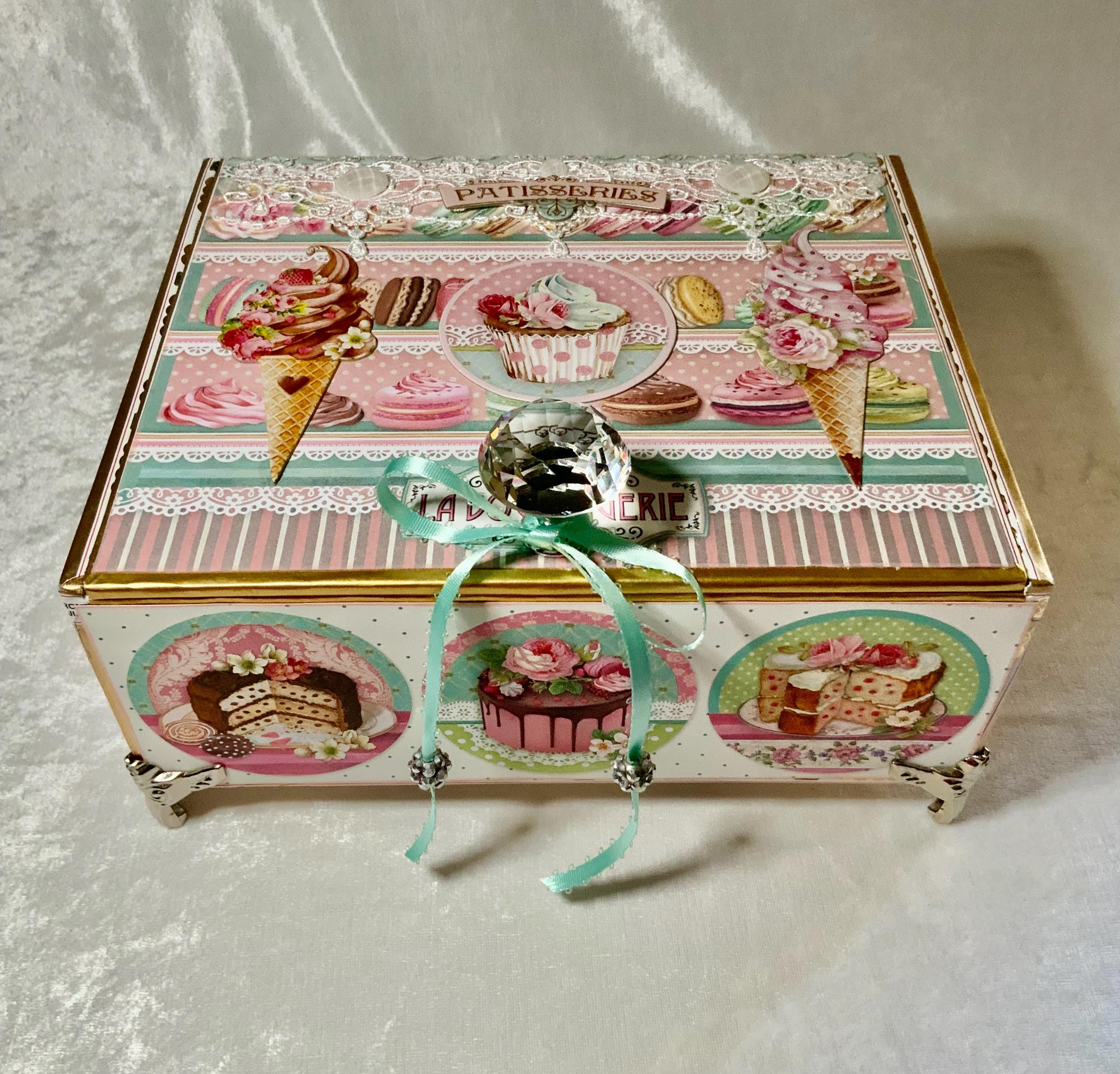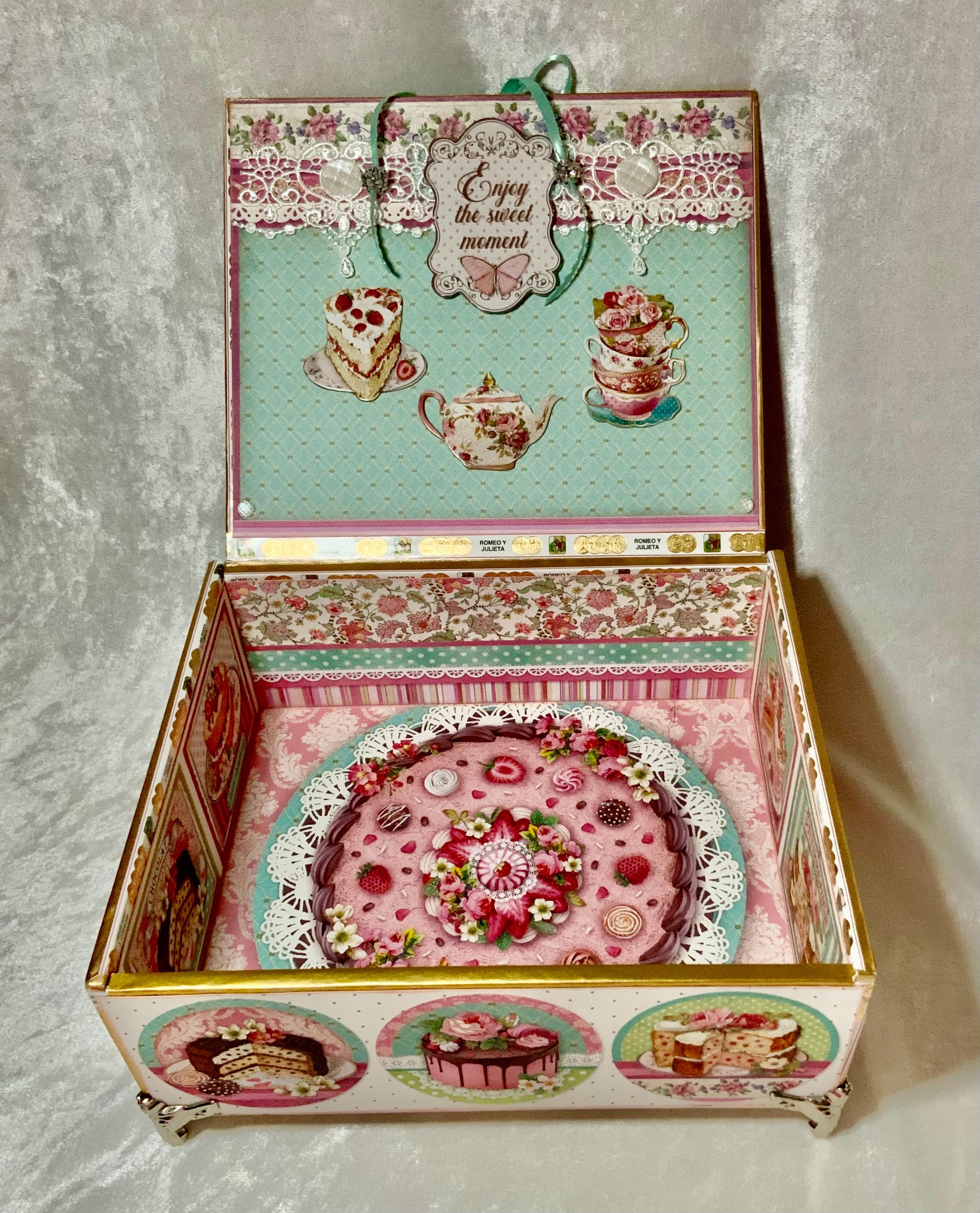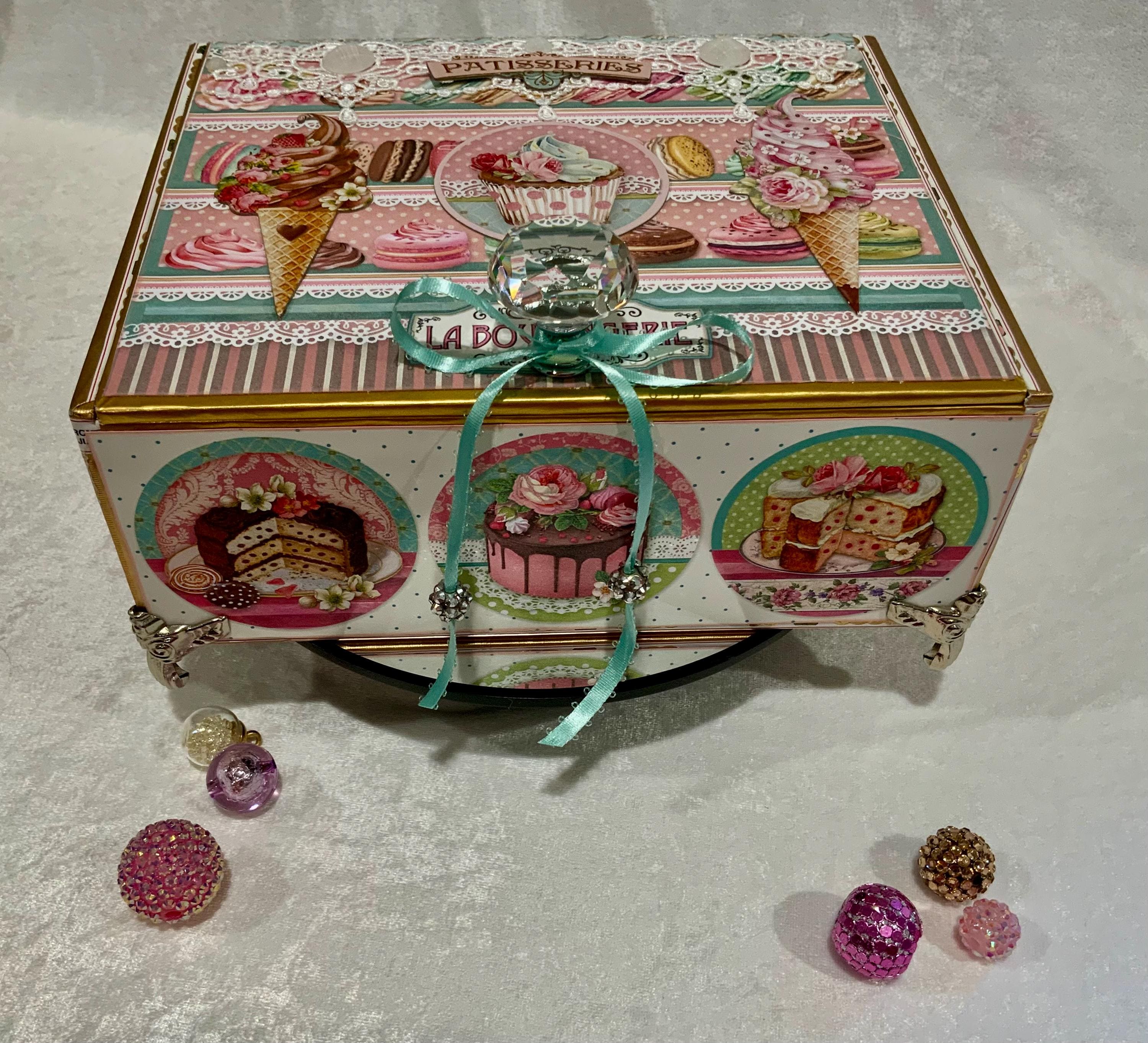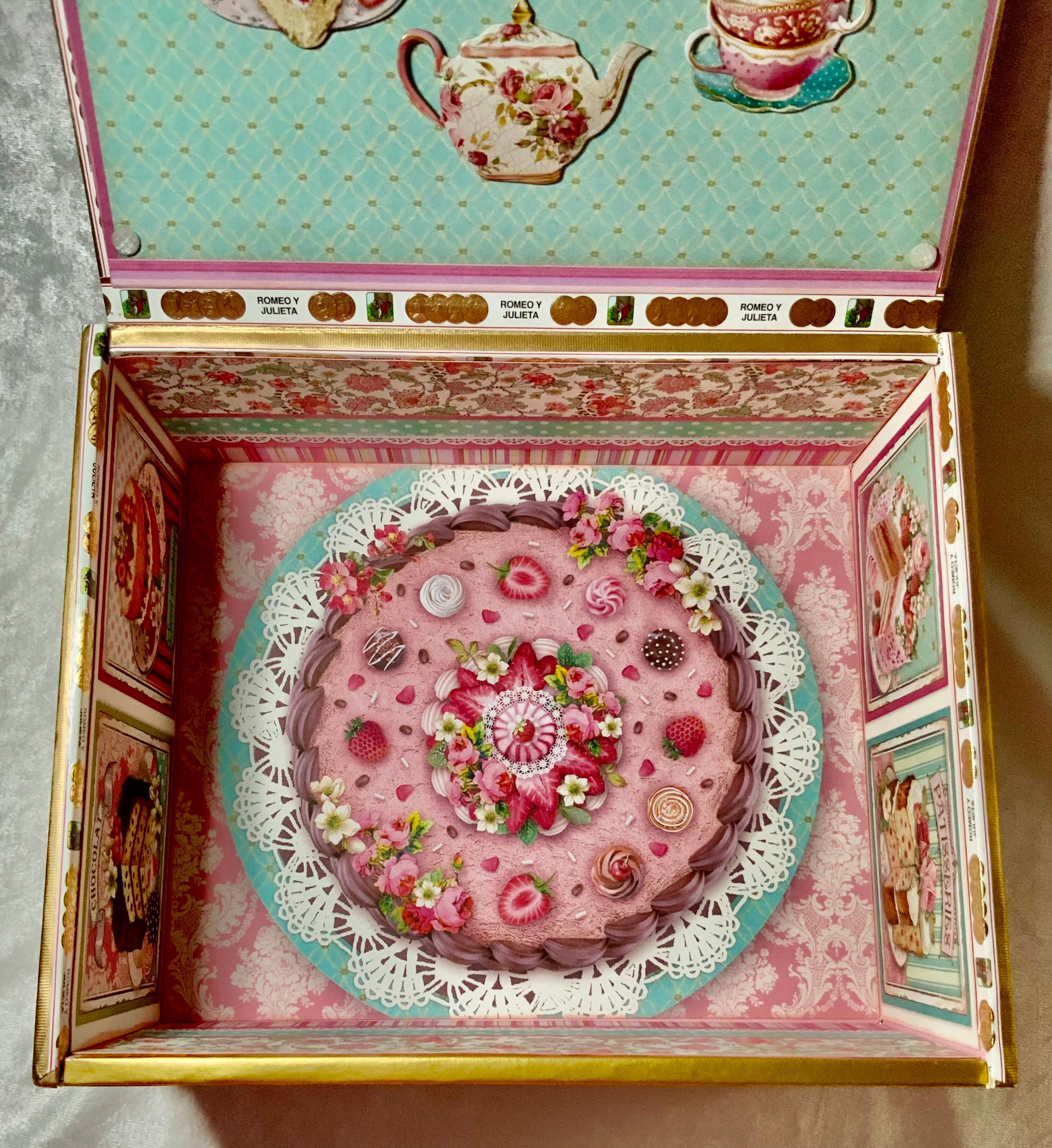 All of my keepsake boxes are authentic upcycled cigar boxes. I carefully select the best ones to decorate, and most surfaces are covered with premium papers, trims, and embellishments. For my Camacho âpiano finishâ boxes, the glossy black lids may show faint surface scratches from their original life â these are minor and add to the authentic character of the box.