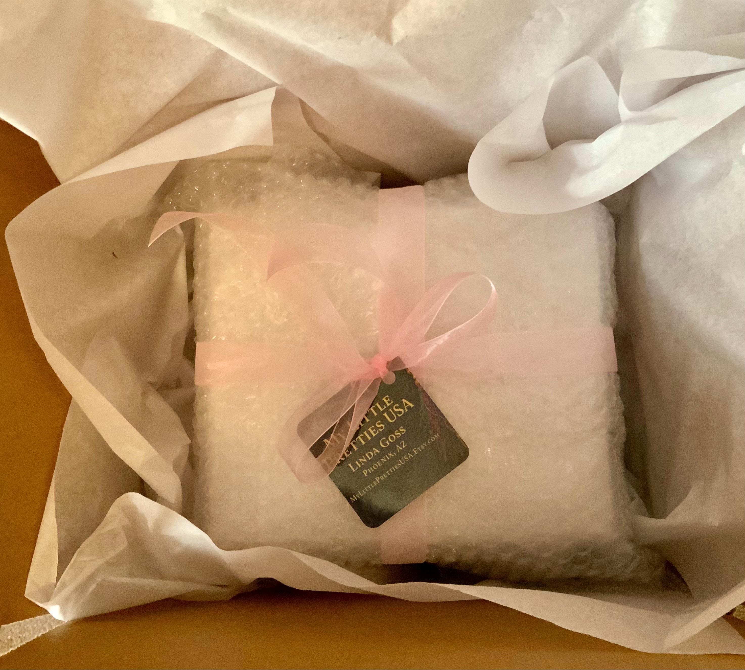 Your order is then placed in a sturdy box and shipped with care. I take pride in every detail, so your unboxing experience is as delightful as the keepsake inside.