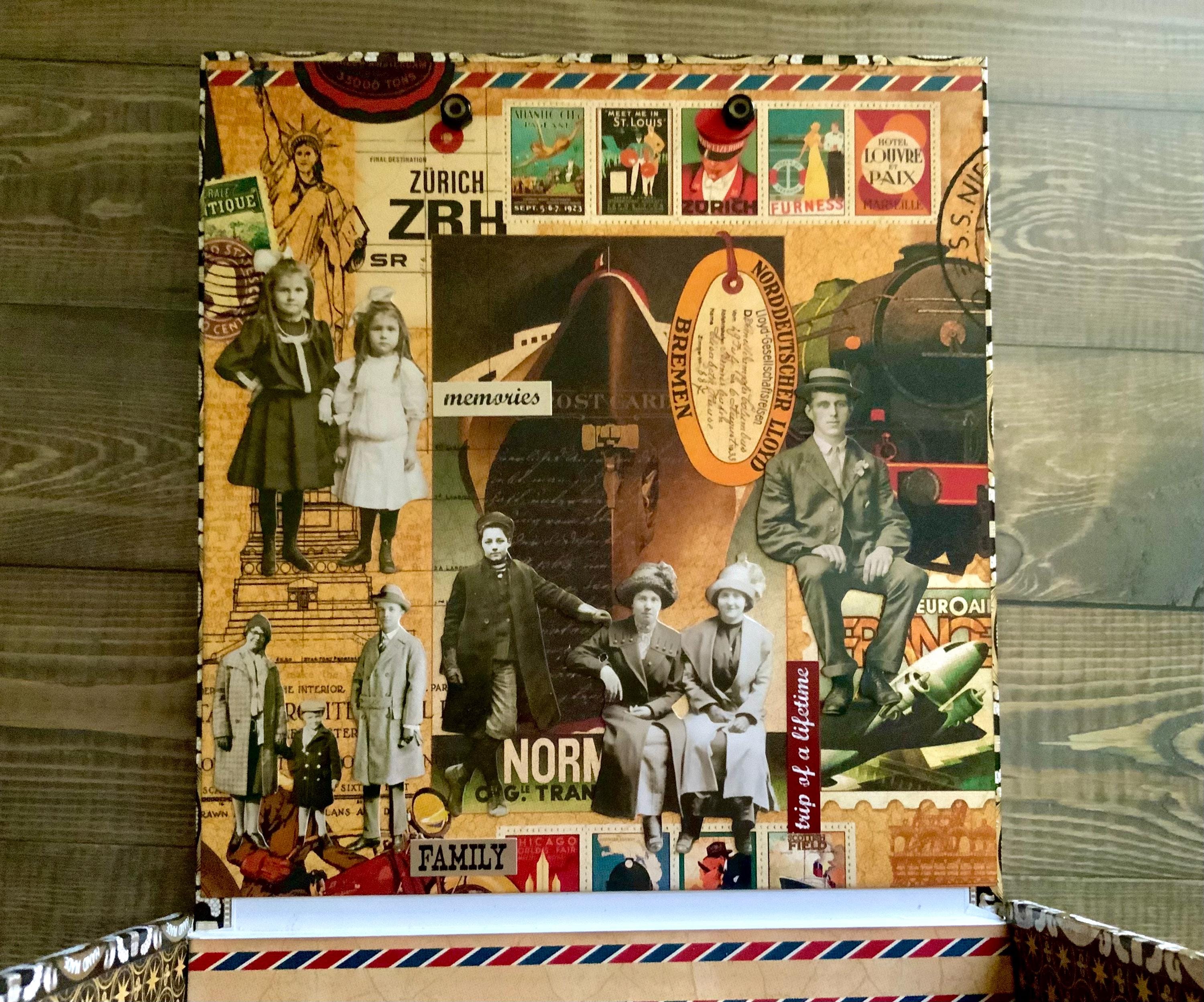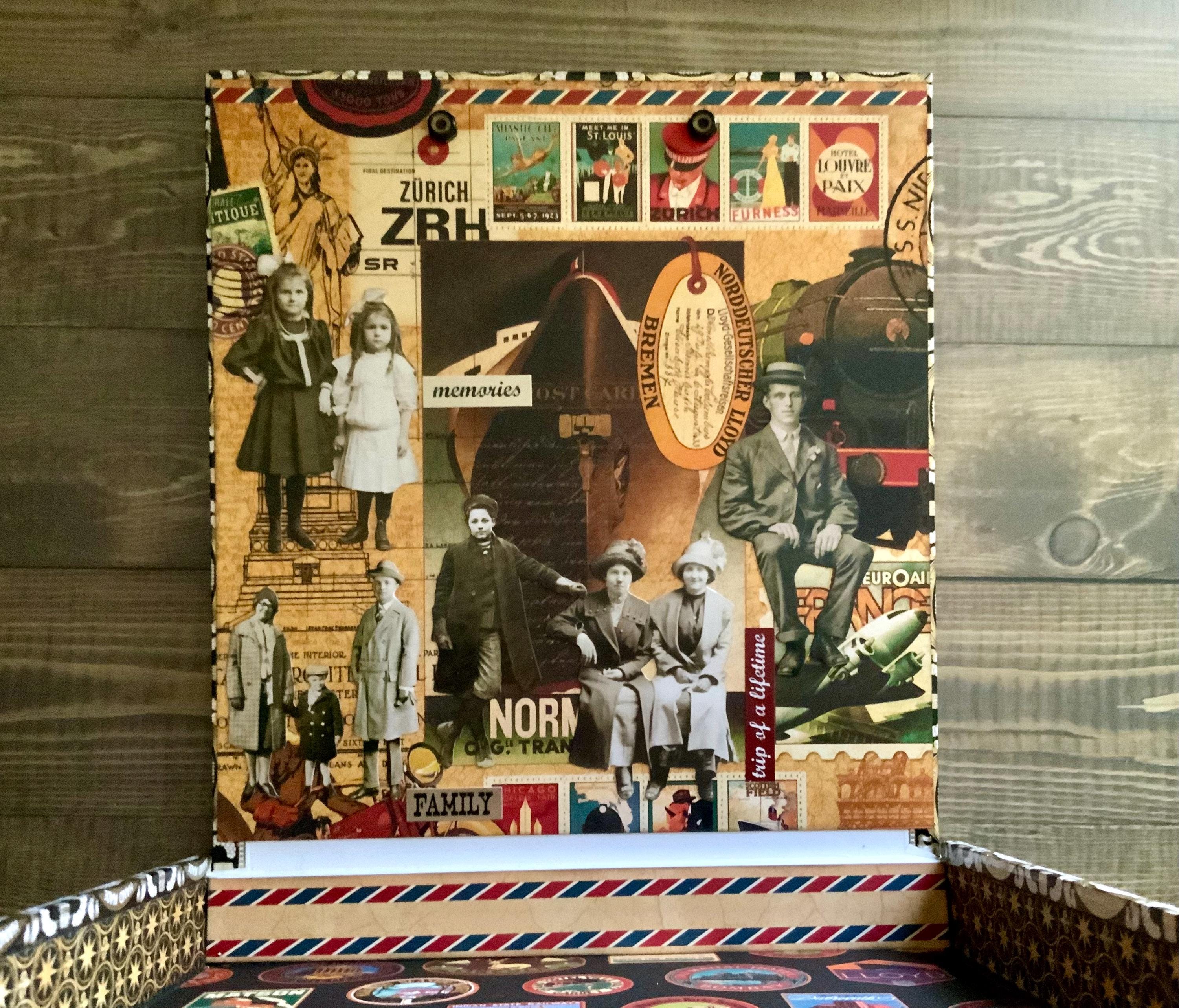 This Transatlantique decorated cigar box is a true collectible piece — handcrafted using the highly sought-after, retired paper collection from Graphic 45.