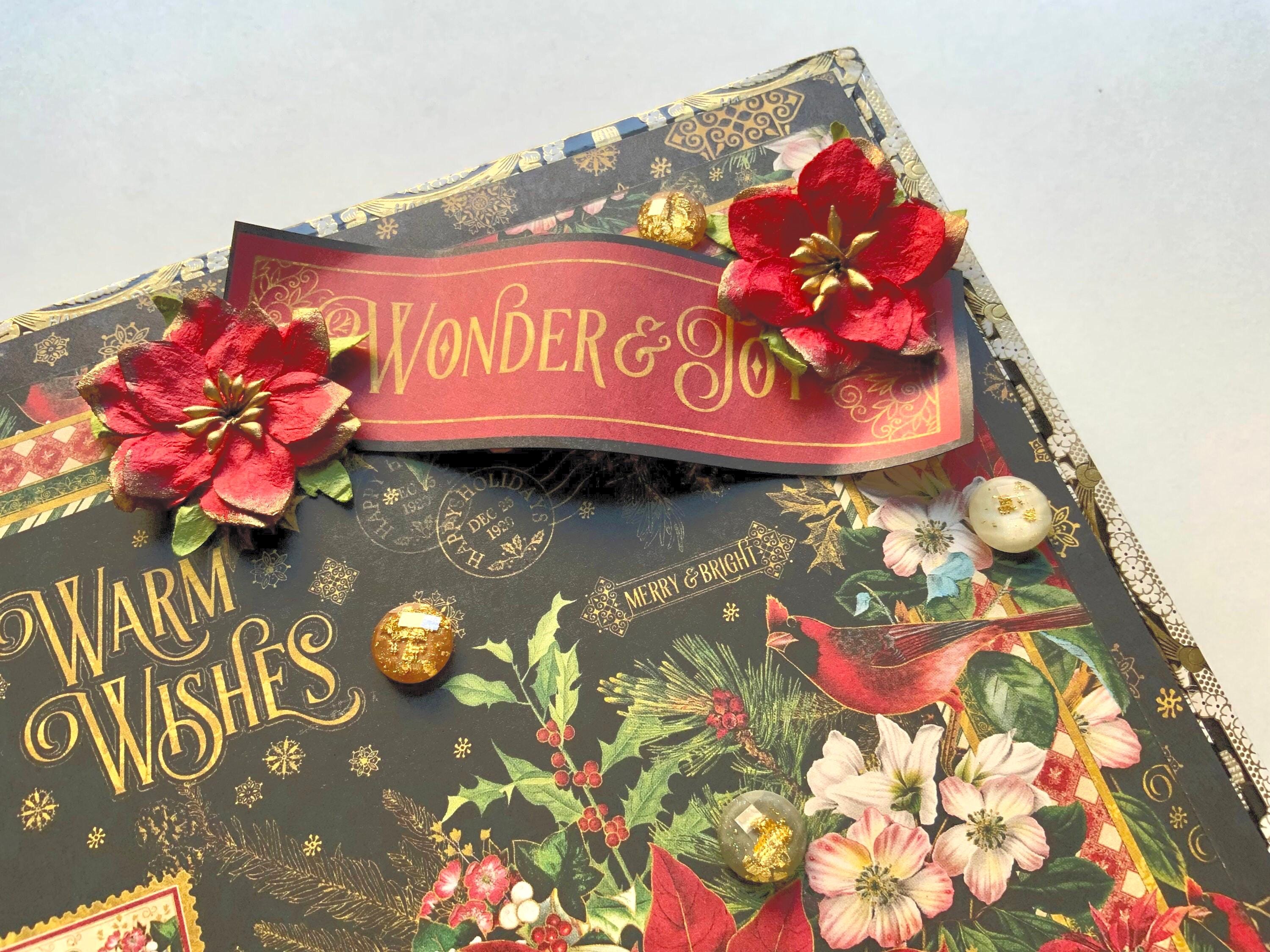 • Graphic 45 “Warm Wishes” collection with black, gold, red, and green holiday florals