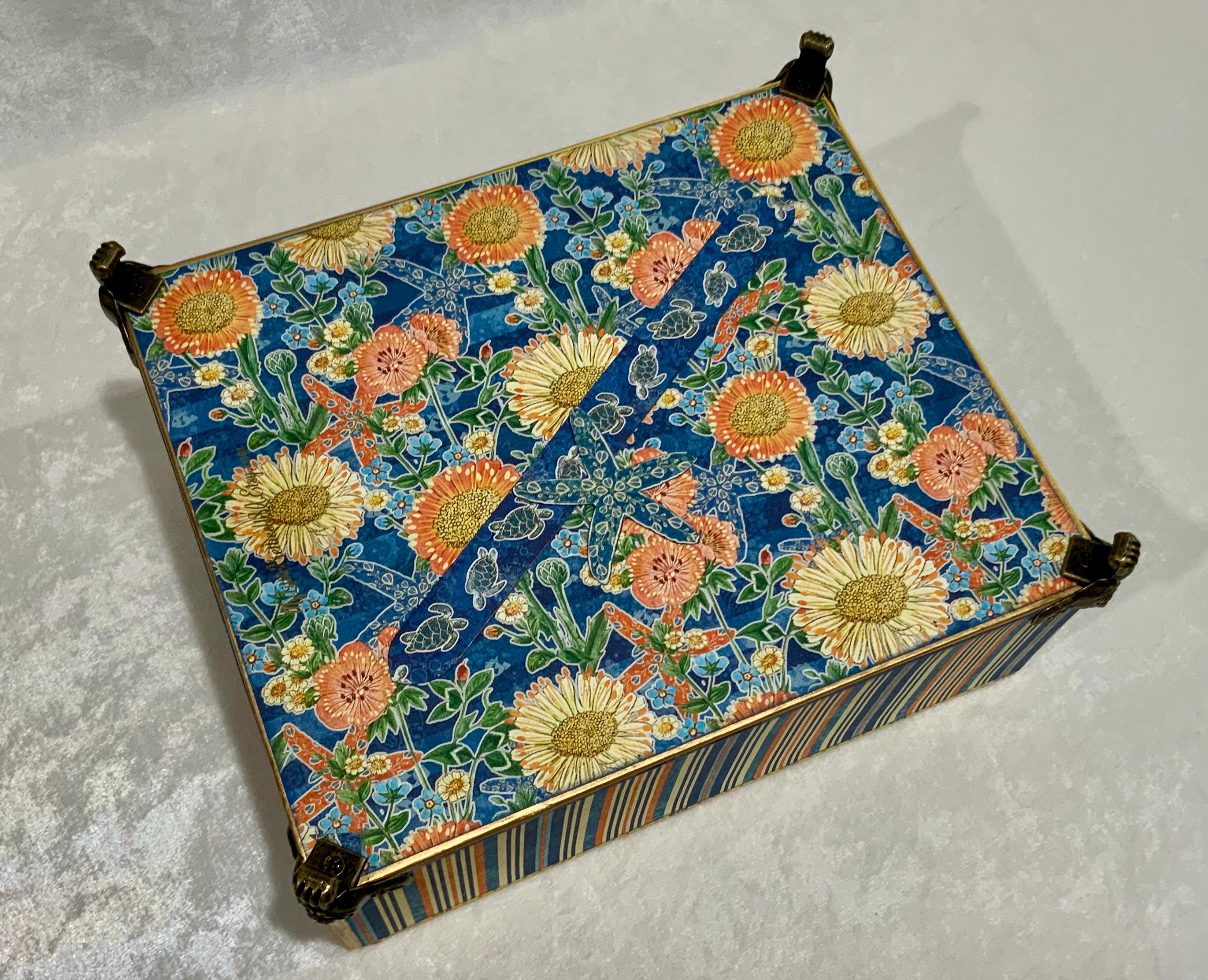 All boxes are thoroughly aired out before decorating to ensure there’s no residual odor. I also clean and line each one with care. All work is done in a smoke-free studio, and your box will arrive fresh and ready to enjoy.
