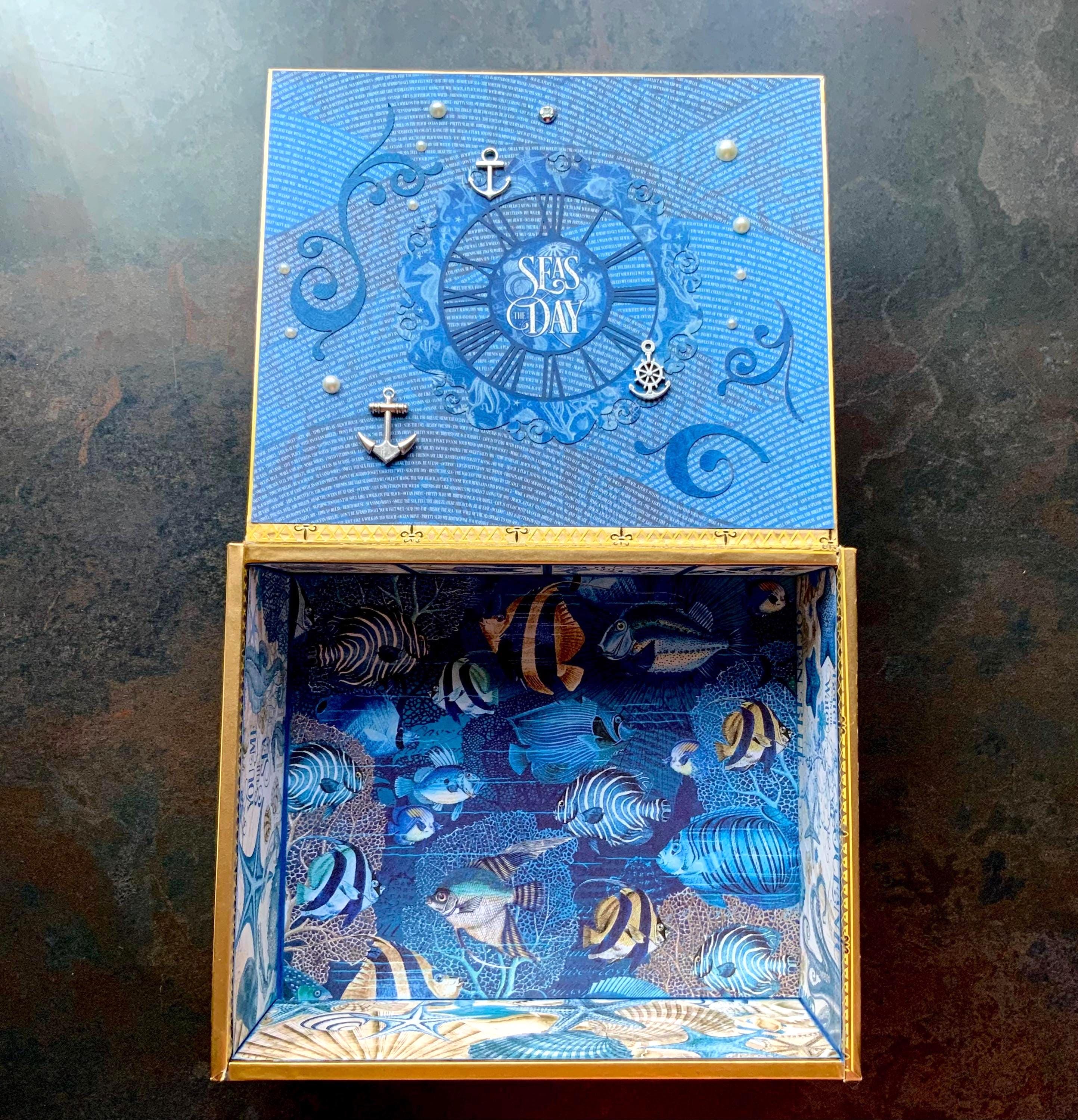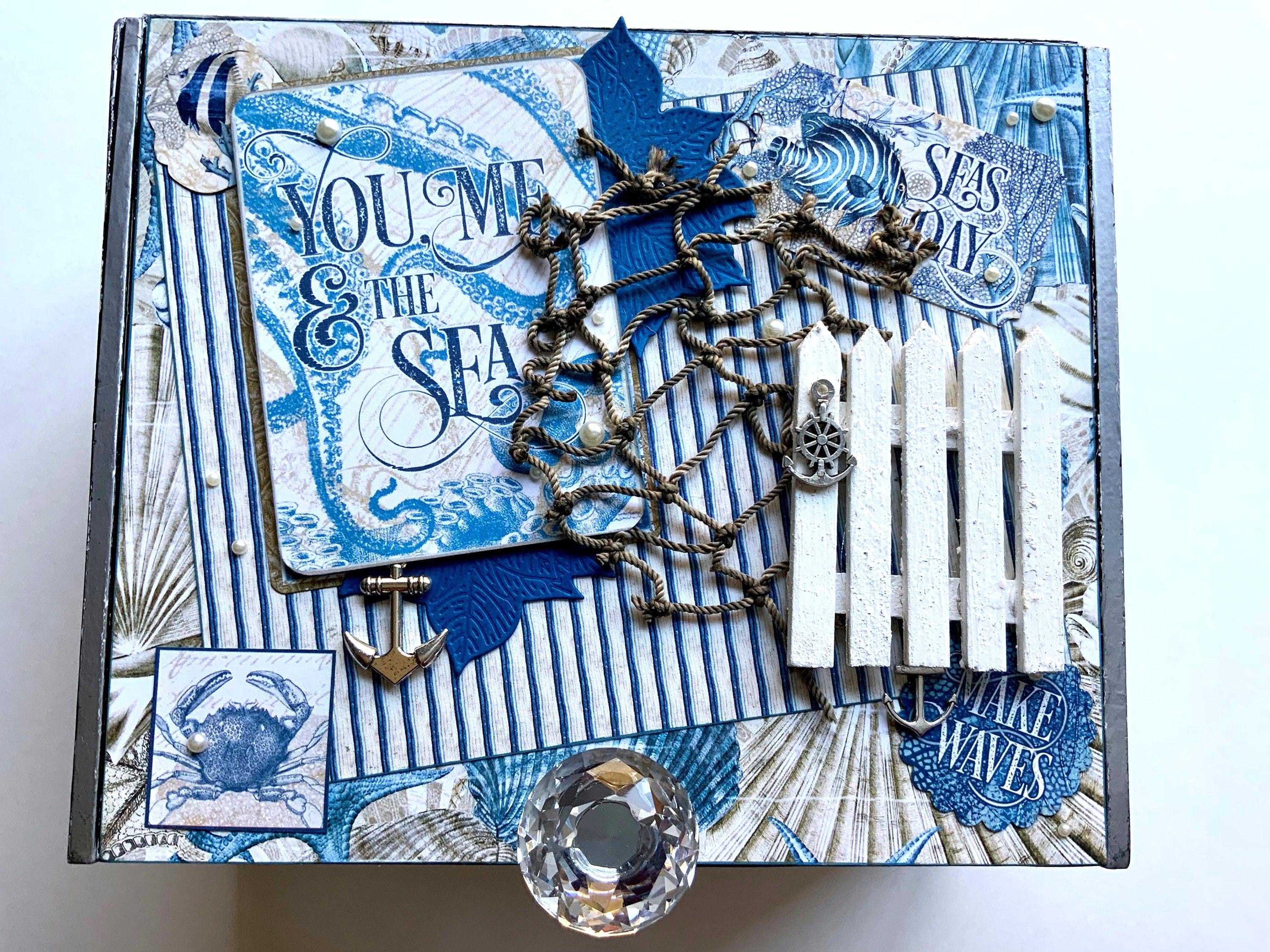 Nautical Coastal Decorated Cigar Box – Ocean Theme Keepsake – Handmade Coastal Gift