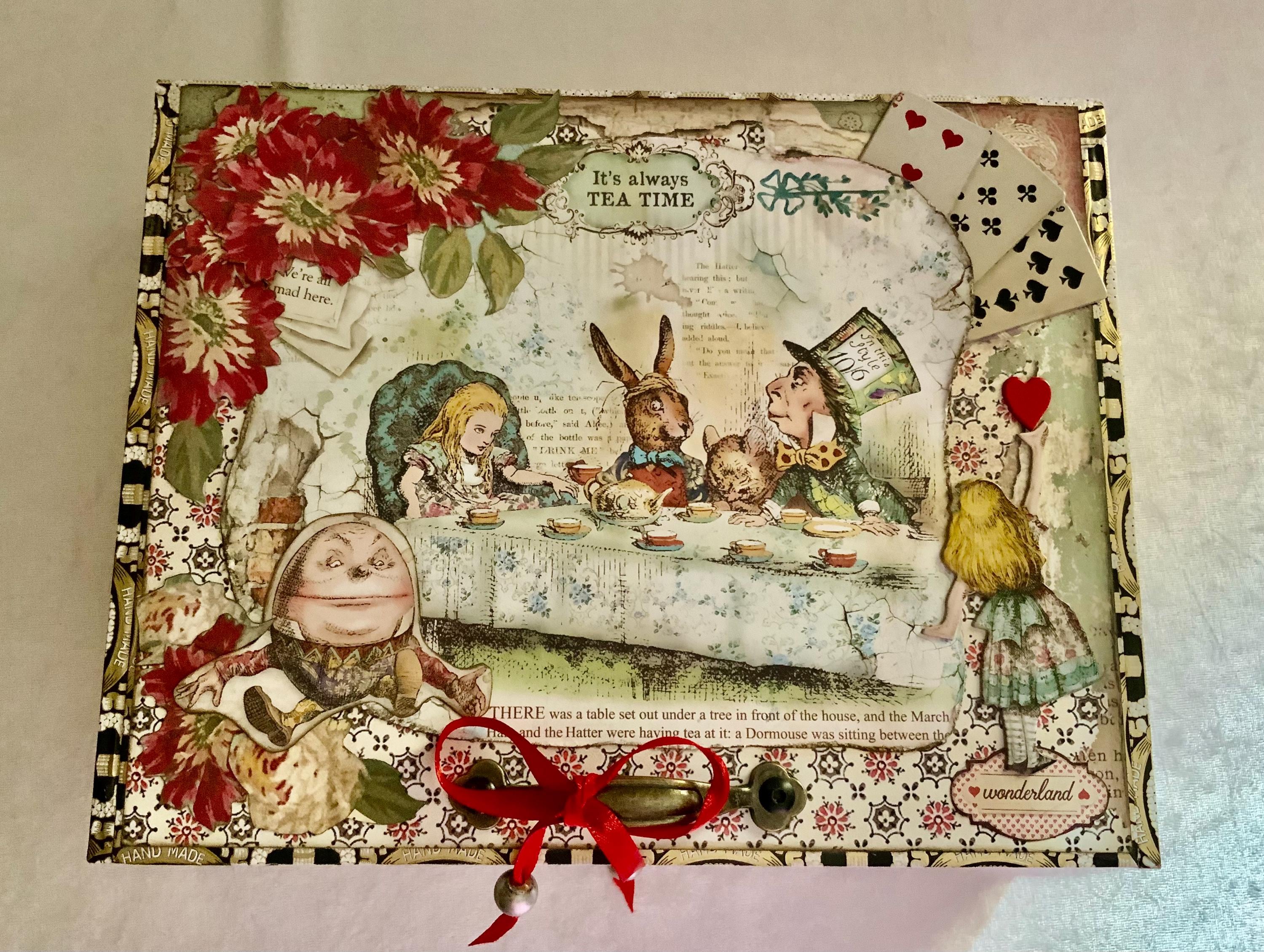 Alice in Wonderland Tea Party Box. Alice Jewelry box. Alice Tea storage box.