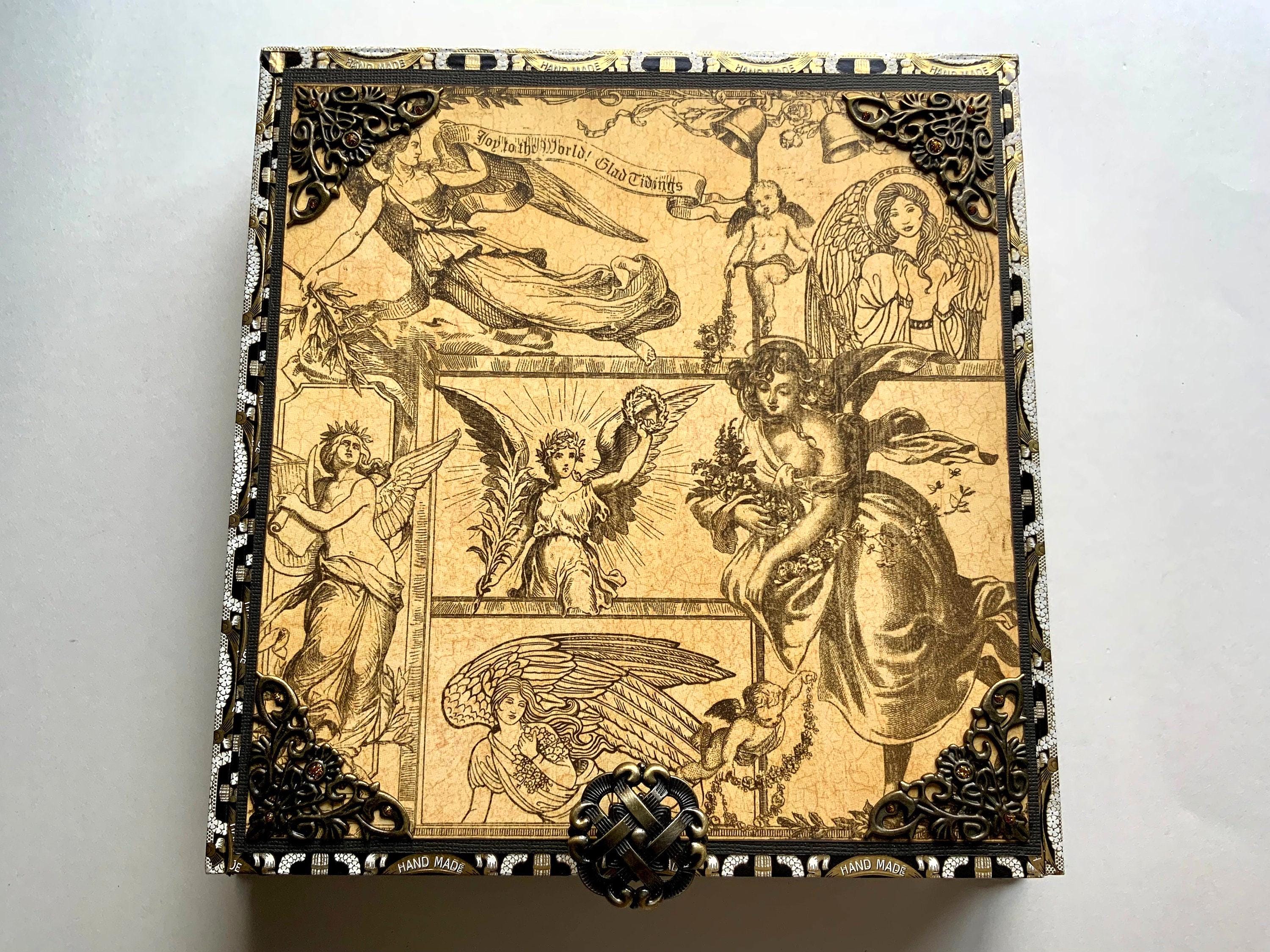 All of my keepsake boxes are authentic upcycled cigar boxes. I carefully select the best ones to decorate, and most surfaces are covered with premium papers, trims, and embellishments. For my Camacho âpiano finishâ boxes, the glossy black lids may show faint surface scratches from their original life â these are minor and add to the authentic character of the box.