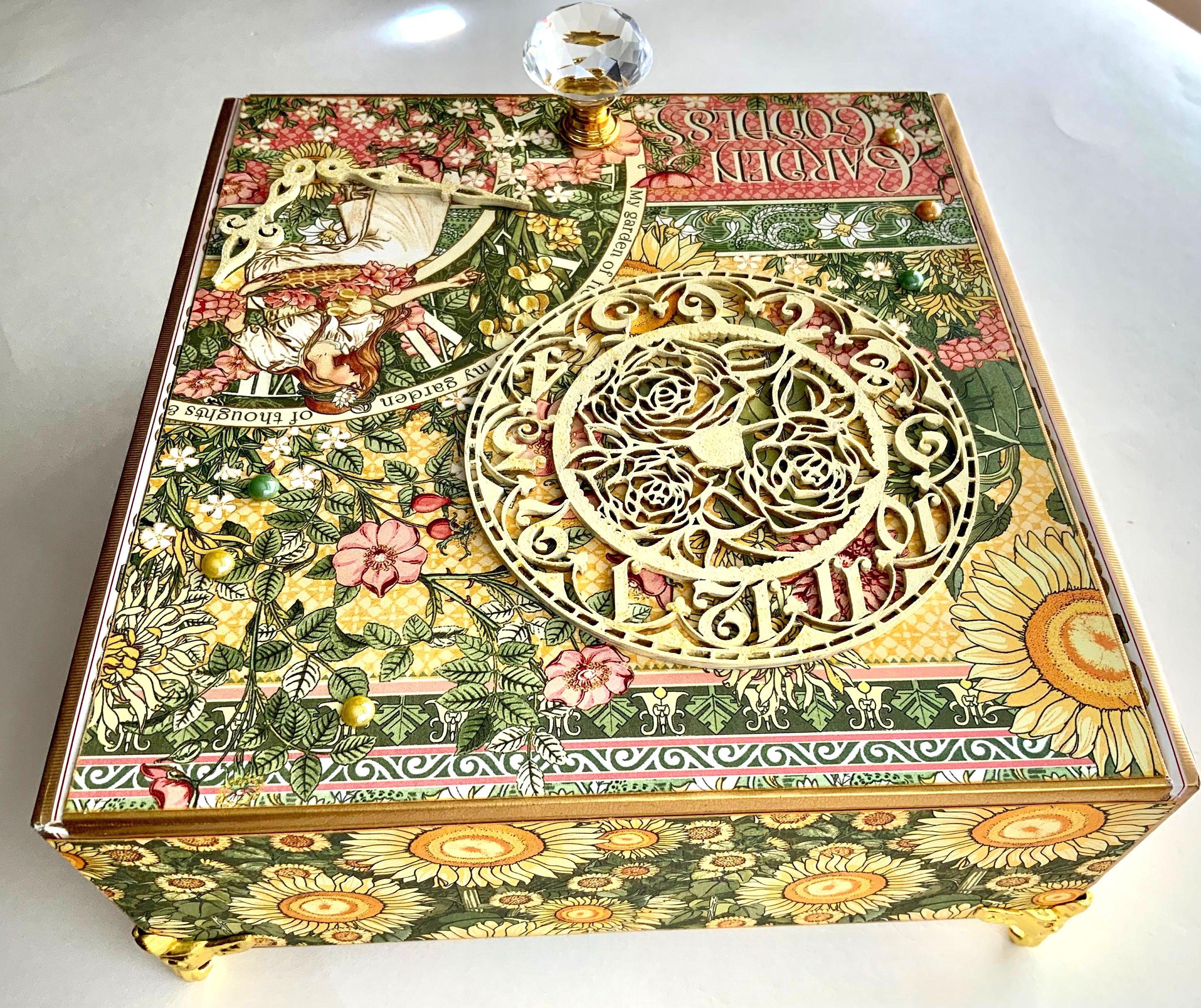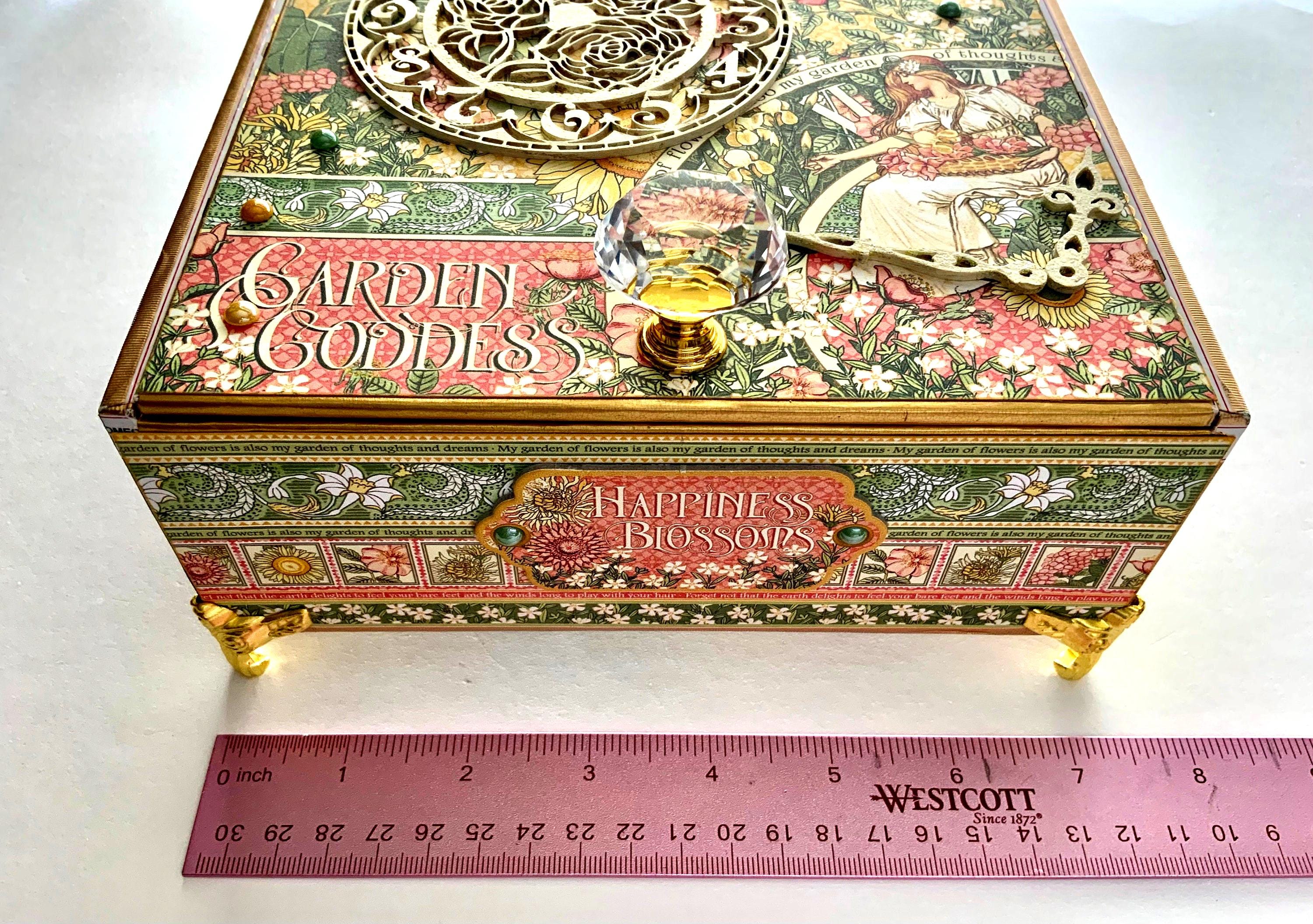 Garden Decorated Cigar Box, Decorative Keepsake, Gift for Gardener