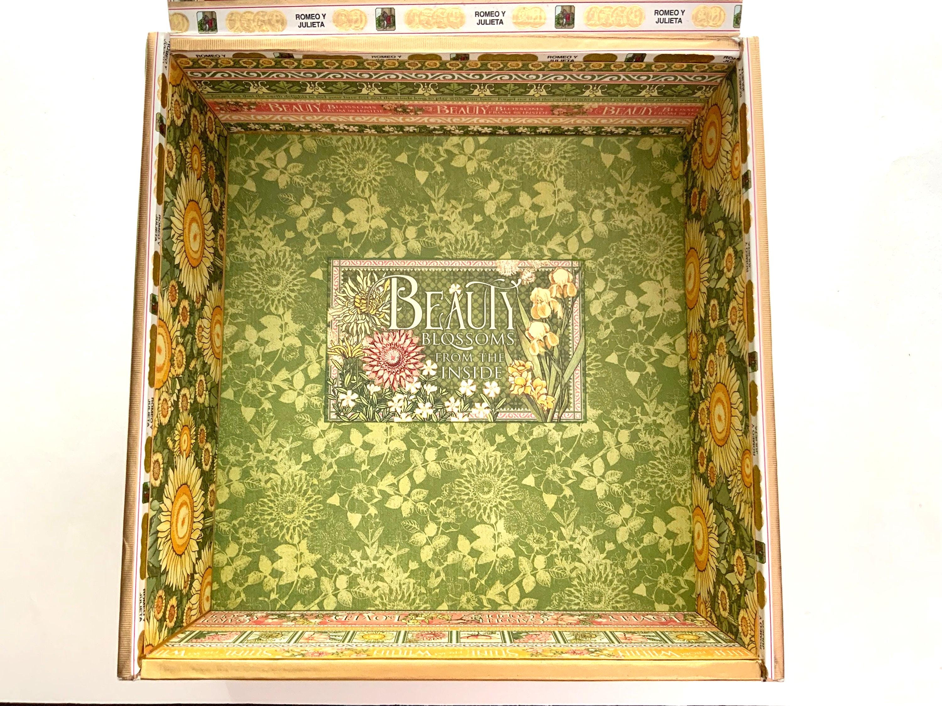 All boxes are thoroughly aired out before decorating to ensure there’s no residual odor. I also clean and line each one with care. All work is done in a smoke-free studio, and your box will arrive fresh and ready to enjoy.