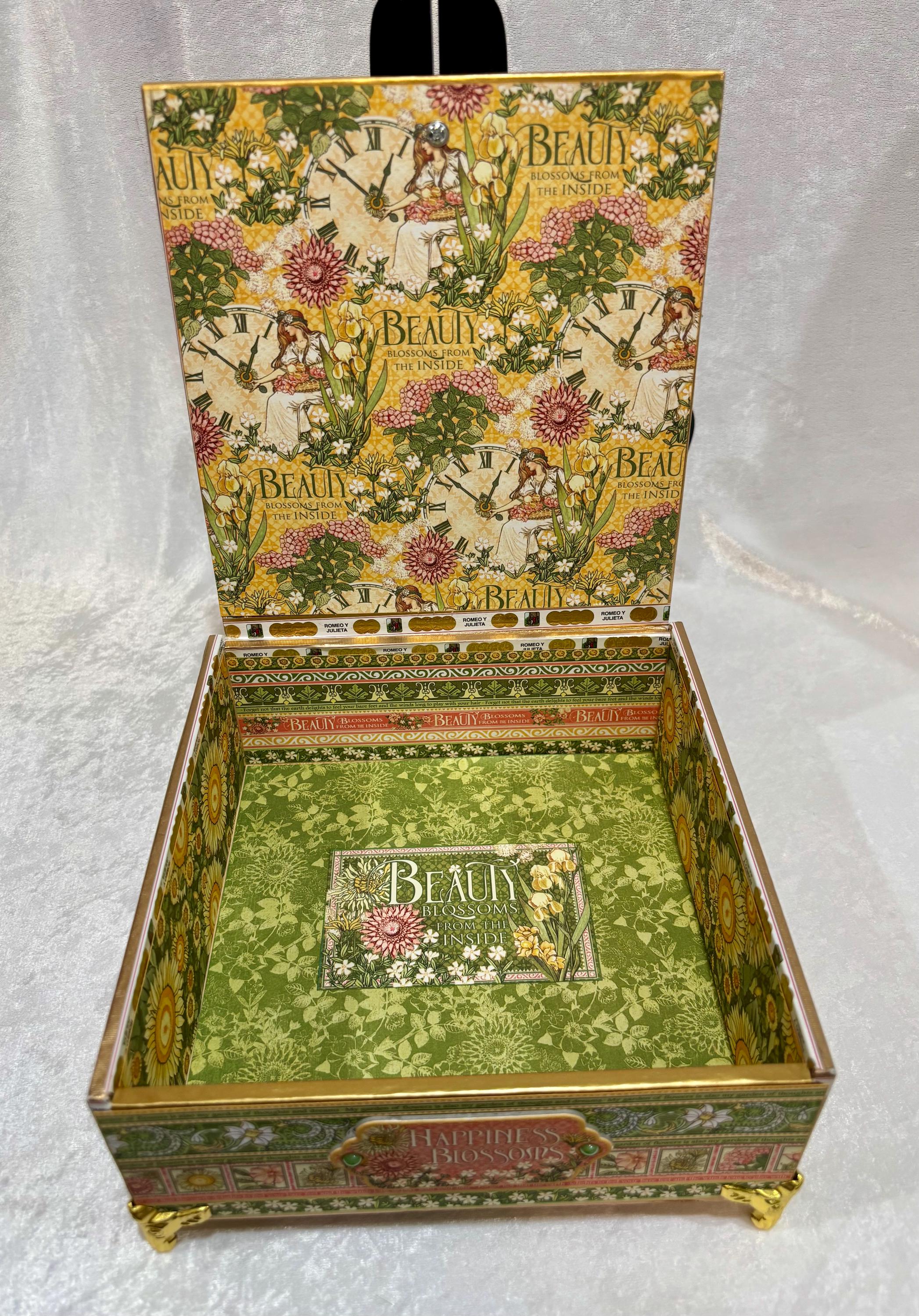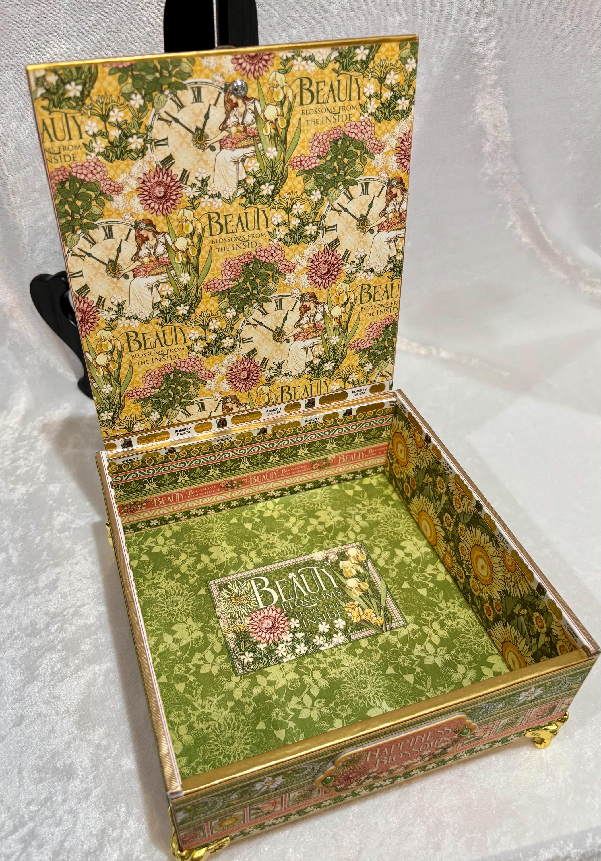 • Interior fully lined with coordinating Garden Goddess papers, including the “Beauty Blossoms From the Inside” panels