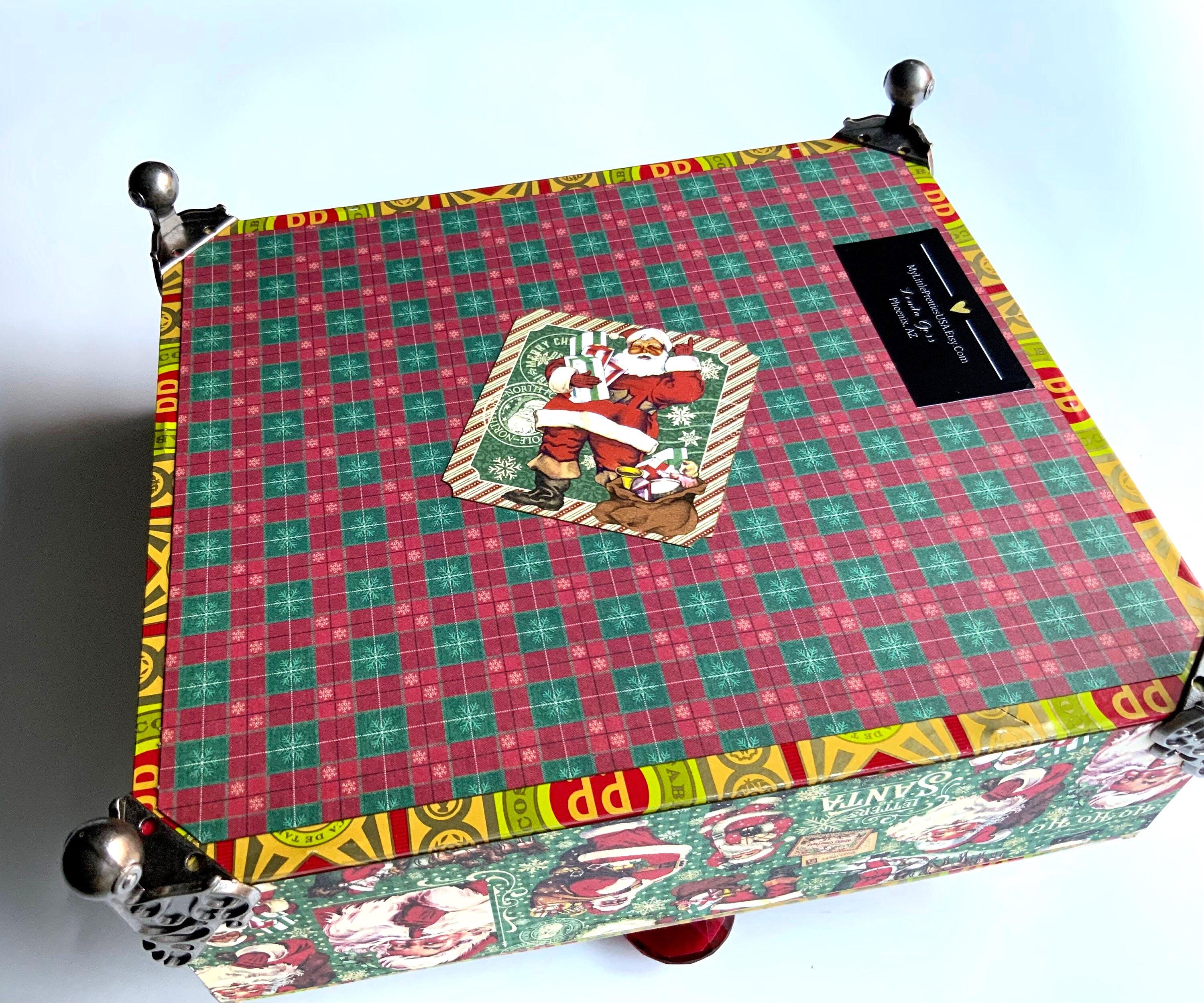 All of my keepsake boxes are authentic upcycled cigar boxes. I carefully select the best ones to decorate, and most surfaces are covered with premium papers, trims, and embellishments. For my Camacho âpiano finishâ boxes, the glossy black lids may show faint surface scratches from their original life â these are minor and add to the authentic character of the box.