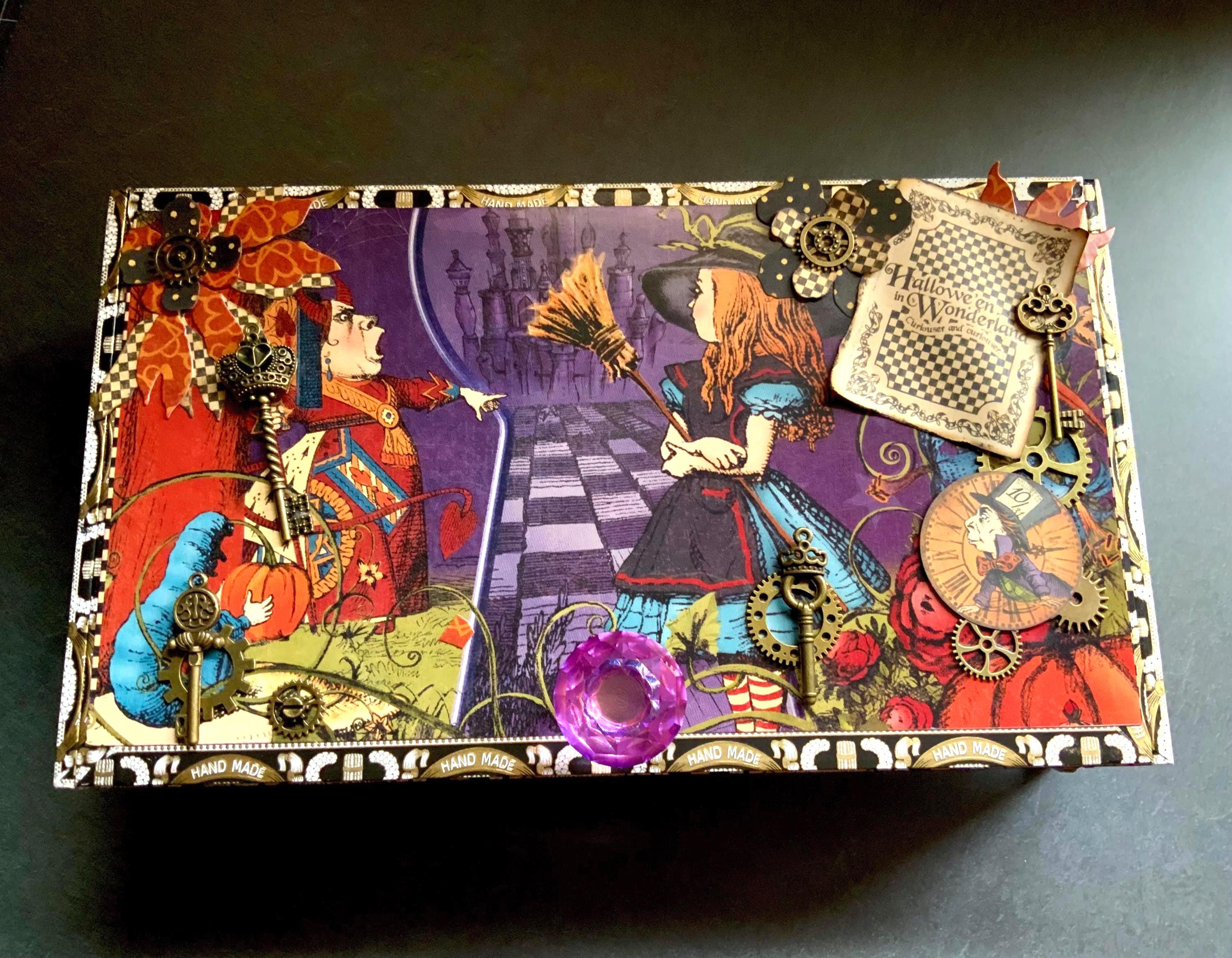 Hallowe’en in Wonderland Decorated Cigar Box – Steampunk Alice Gothic Storage