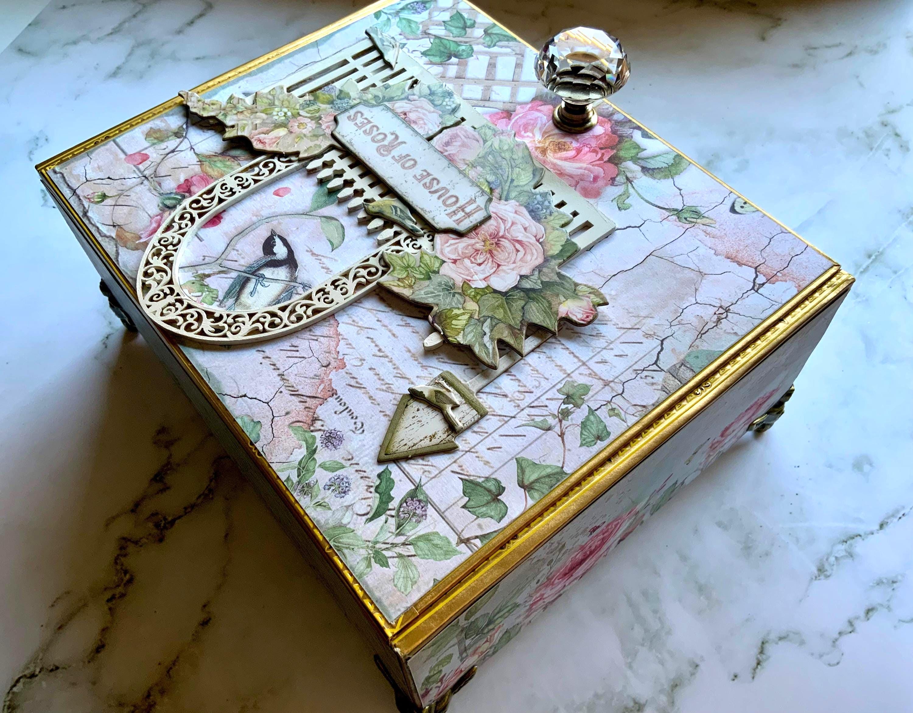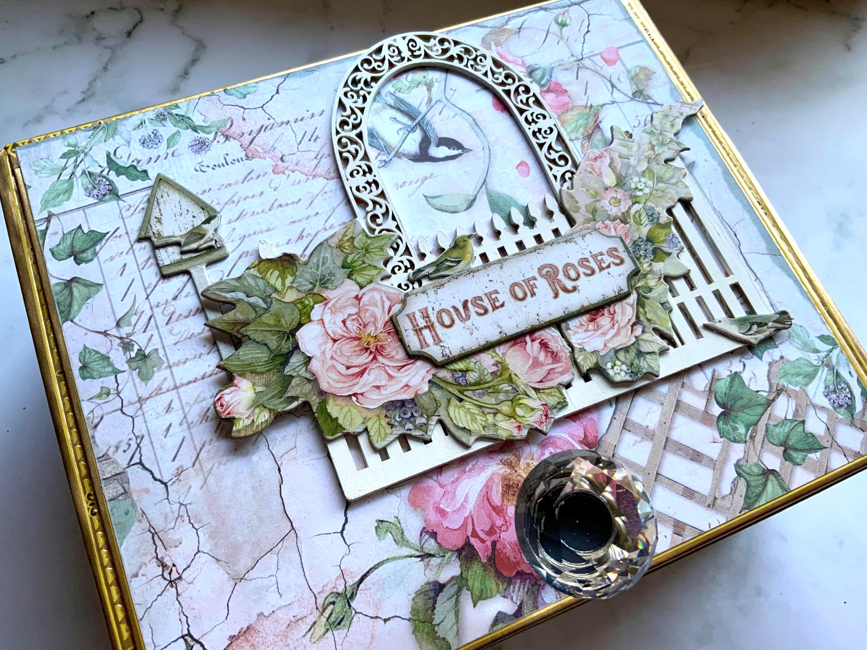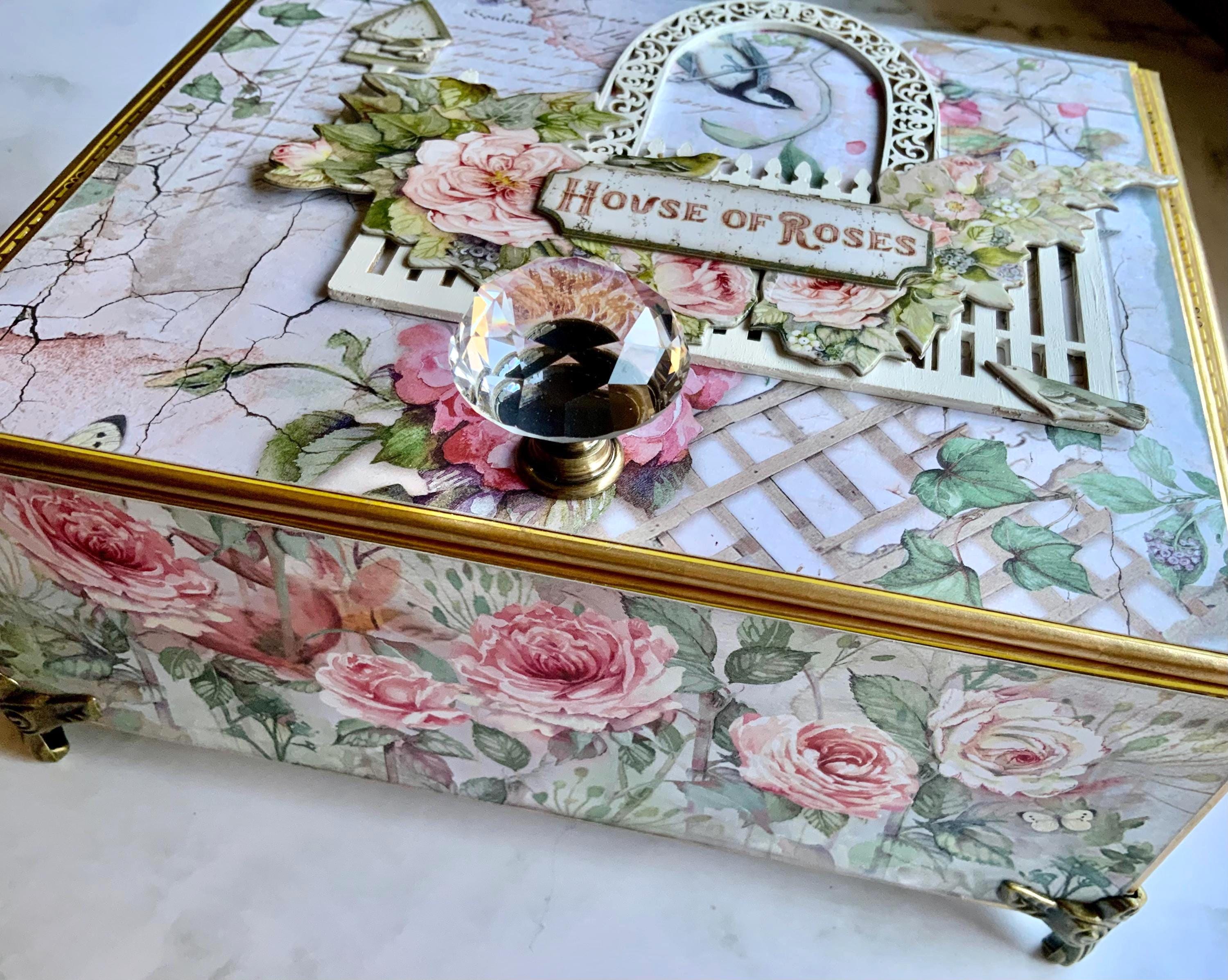 Romantic Garden Keepsake Box – Mintay House of Roses Decorated Cigar Box with Crystal Knob House of Roses Decorated Cigar Box – Romantic Box