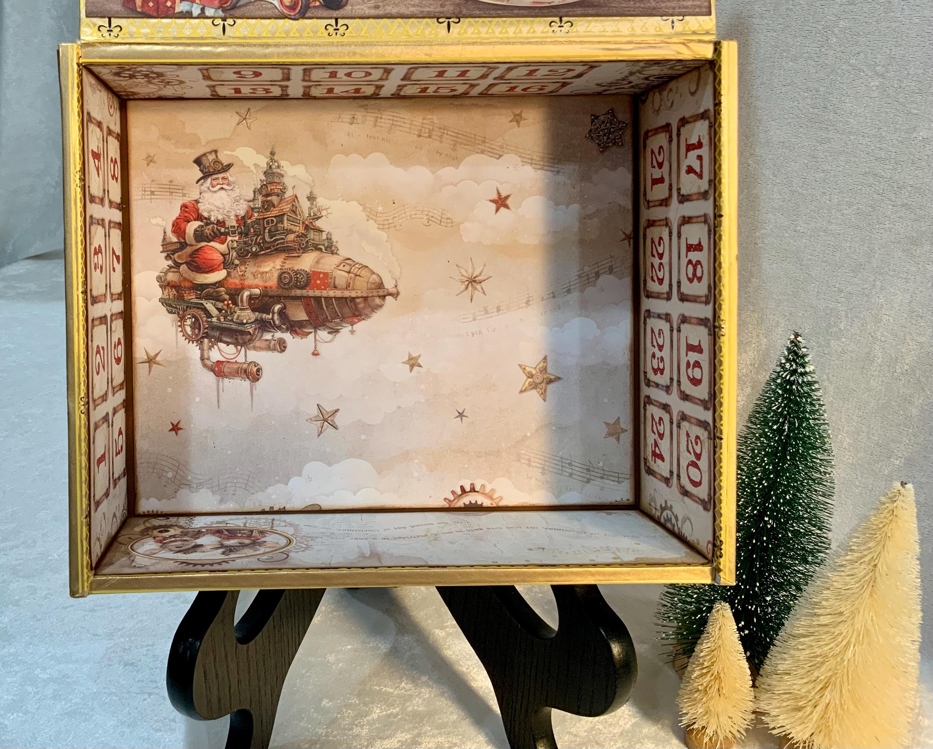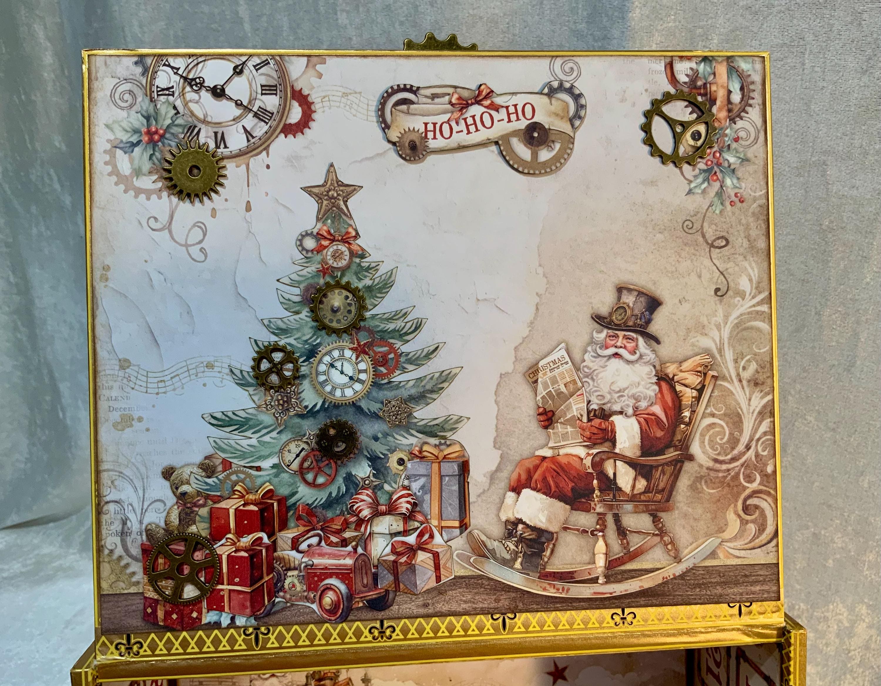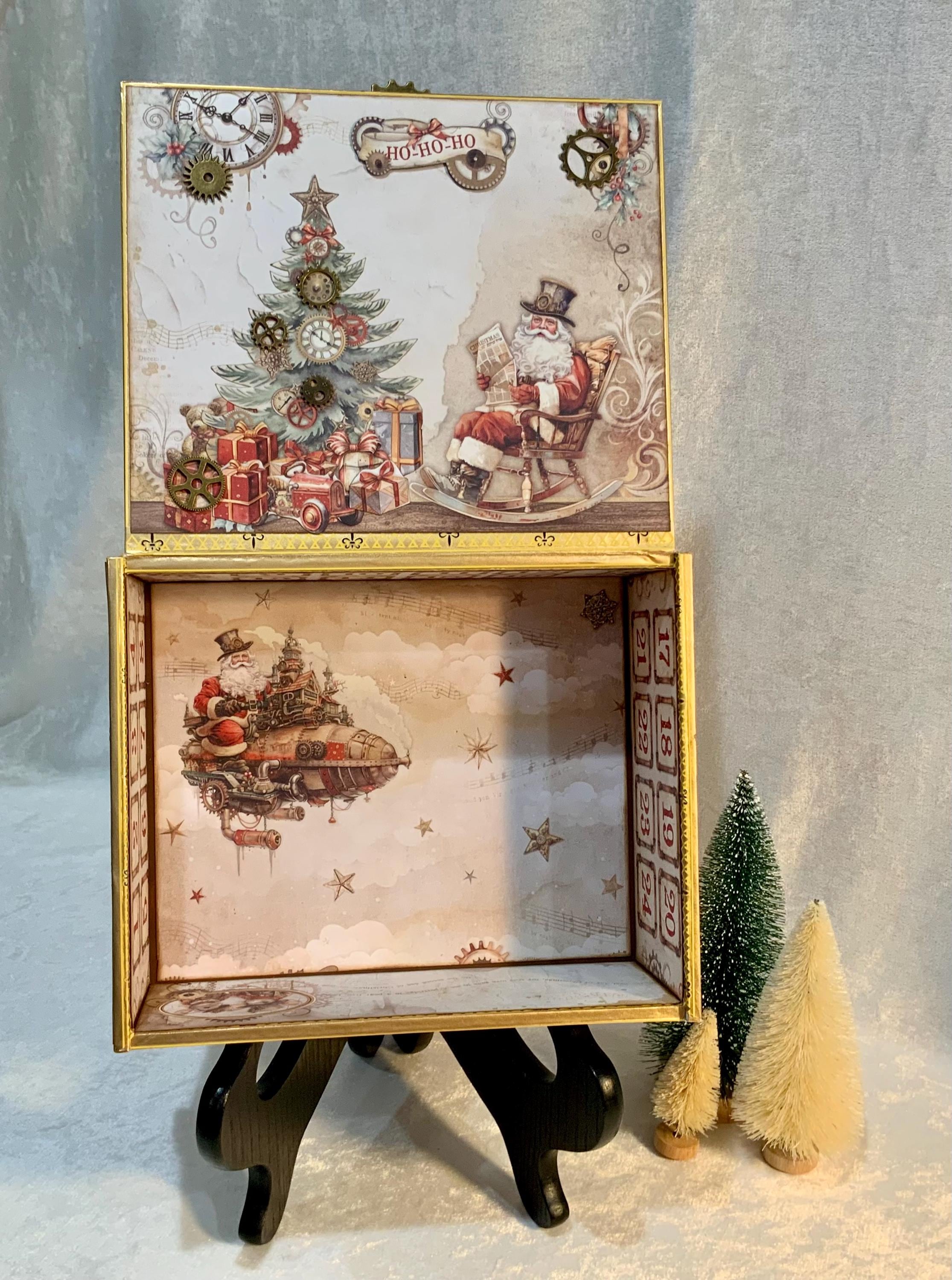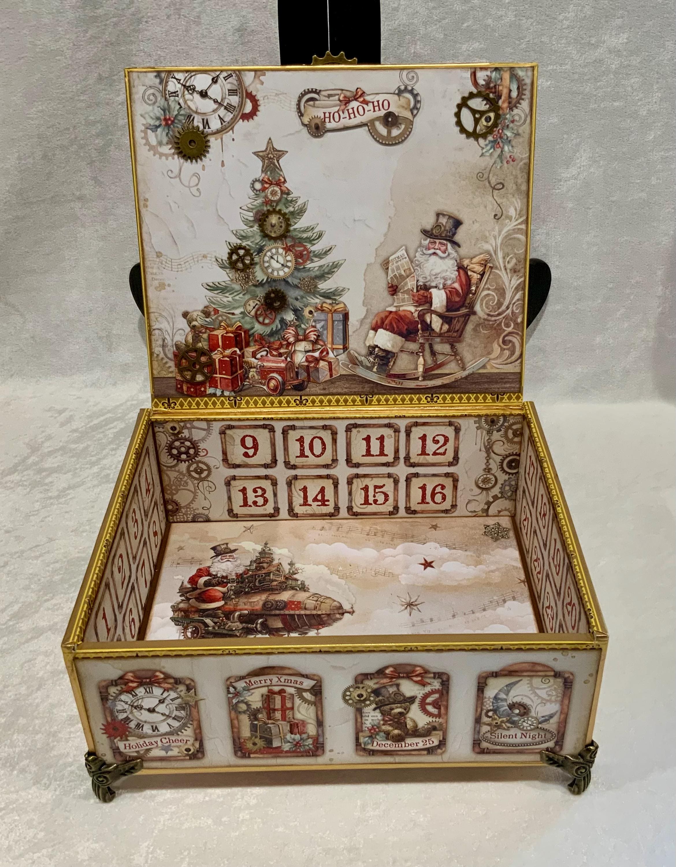 Steampunk Christmas Decorated Cigar Box – Santa, Advent Calendar, & Gears – Christmas Decor