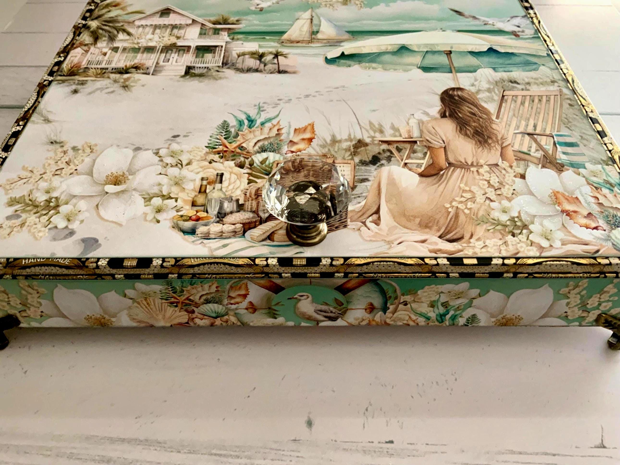 PLEASE NOTE: Many of the decorated cigar boxes in my shop are sample designs. Your box will be handcrafted after purchase using the same paper collection, theme, and level of detail shown.