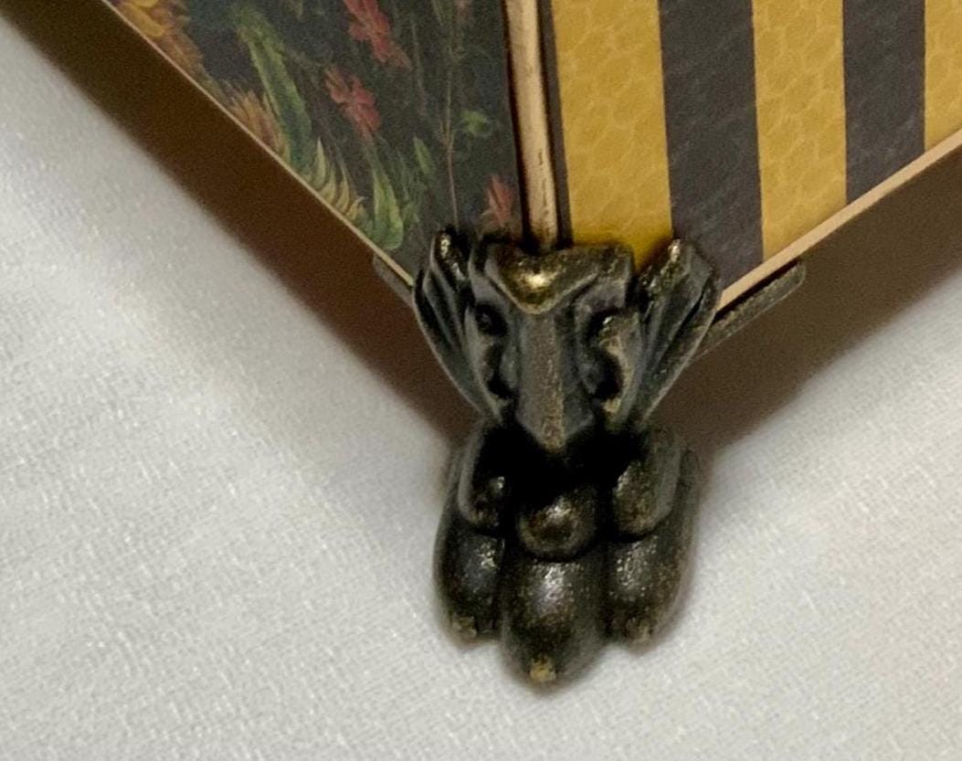 All boxes are thoroughly aired out before decorating to ensure there’s no residual odor. I also clean and line each one with care. All work is done in a smoke-free studio, and your box will arrive fresh and ready to enjoy.