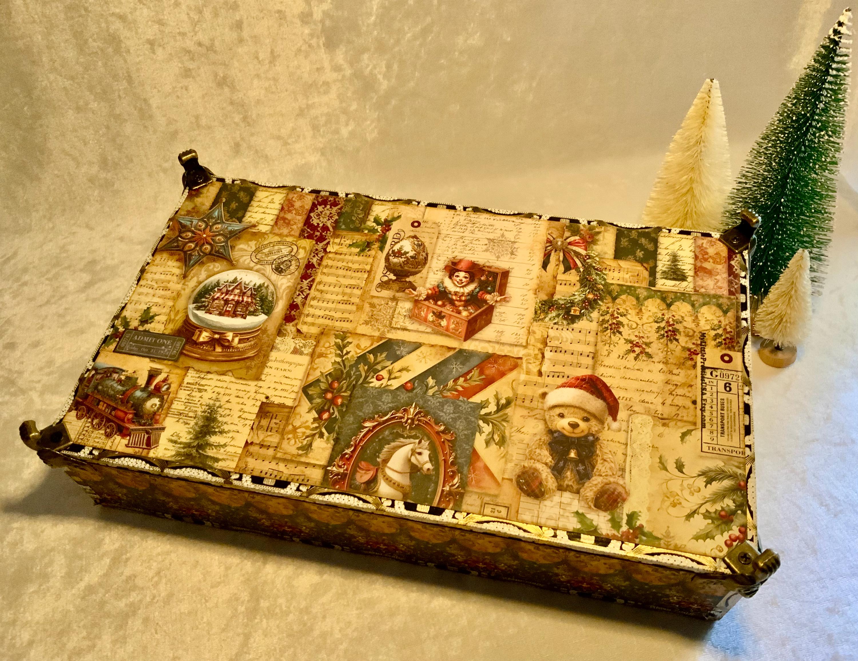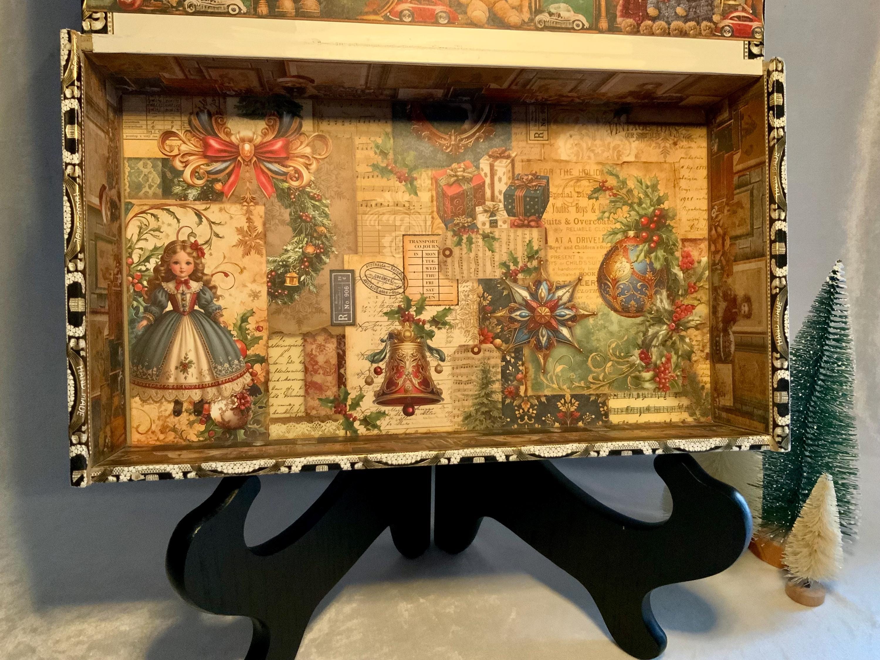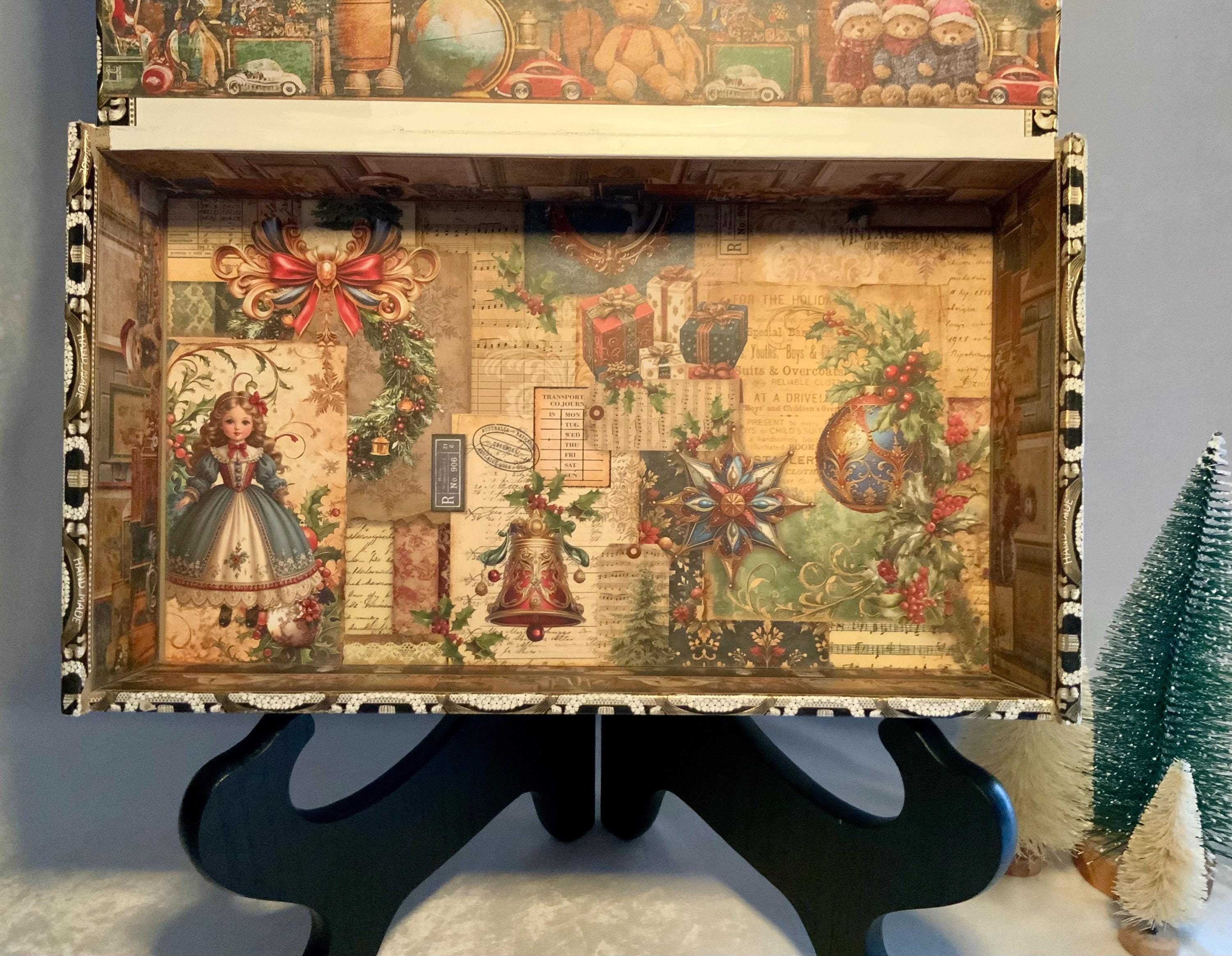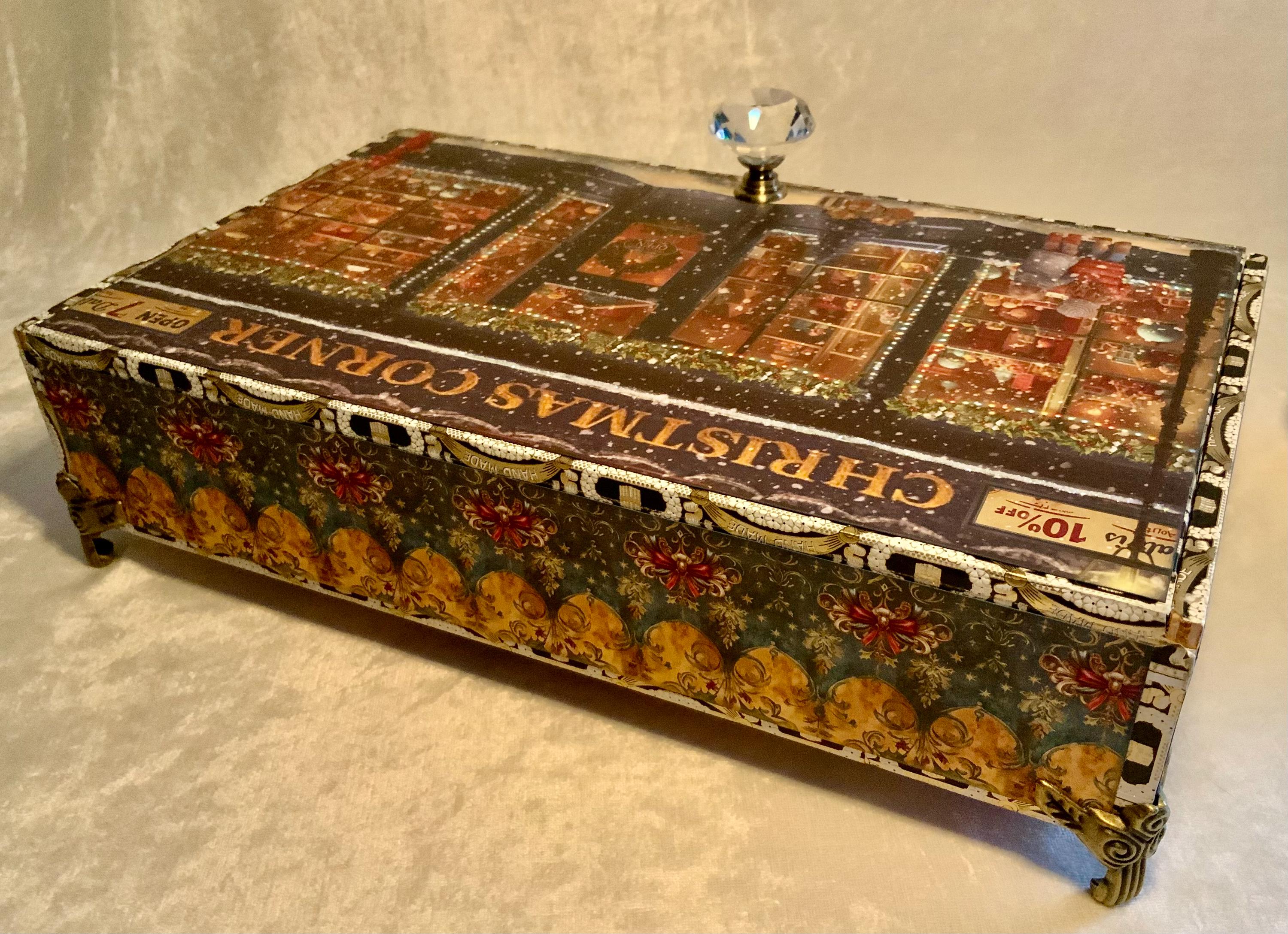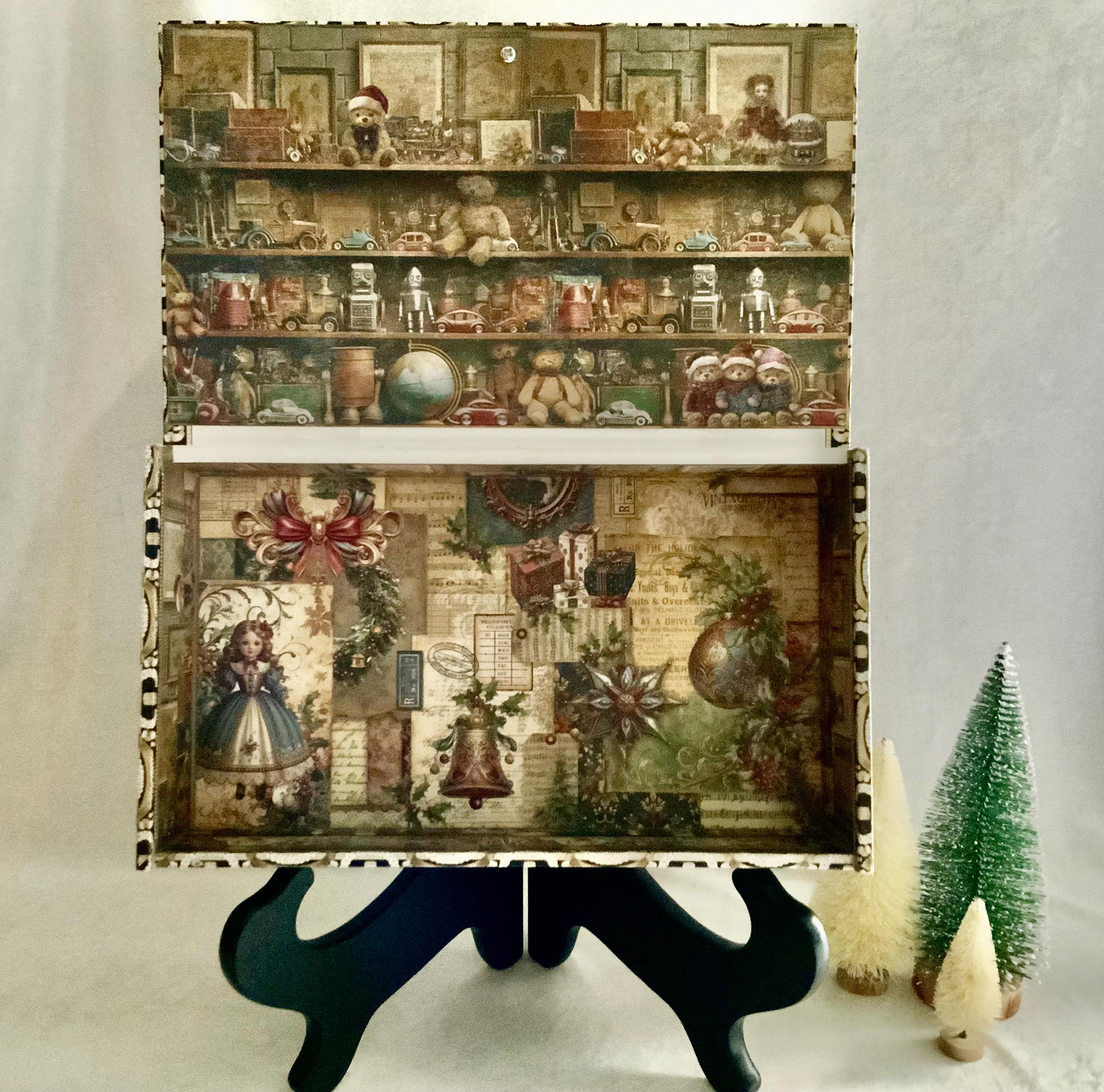 Step into a magical winter wonderland with this handcrafted Christmas Corner Toy Shop decorated cigar box. 🎄