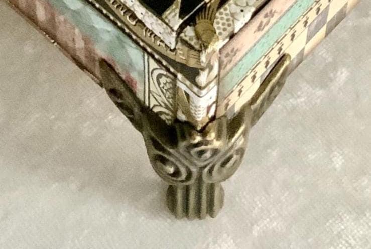 All of my keepsake boxes are authentic upcycled cigar boxes. I carefully select the best ones to decorate, and most surfaces are covered with premium papers, trims, and embellishments. For my Camacho “piano finish” boxes, the glossy black lids may show faint surface scratches from their original life — these are minor and add to the authentic character of the box.