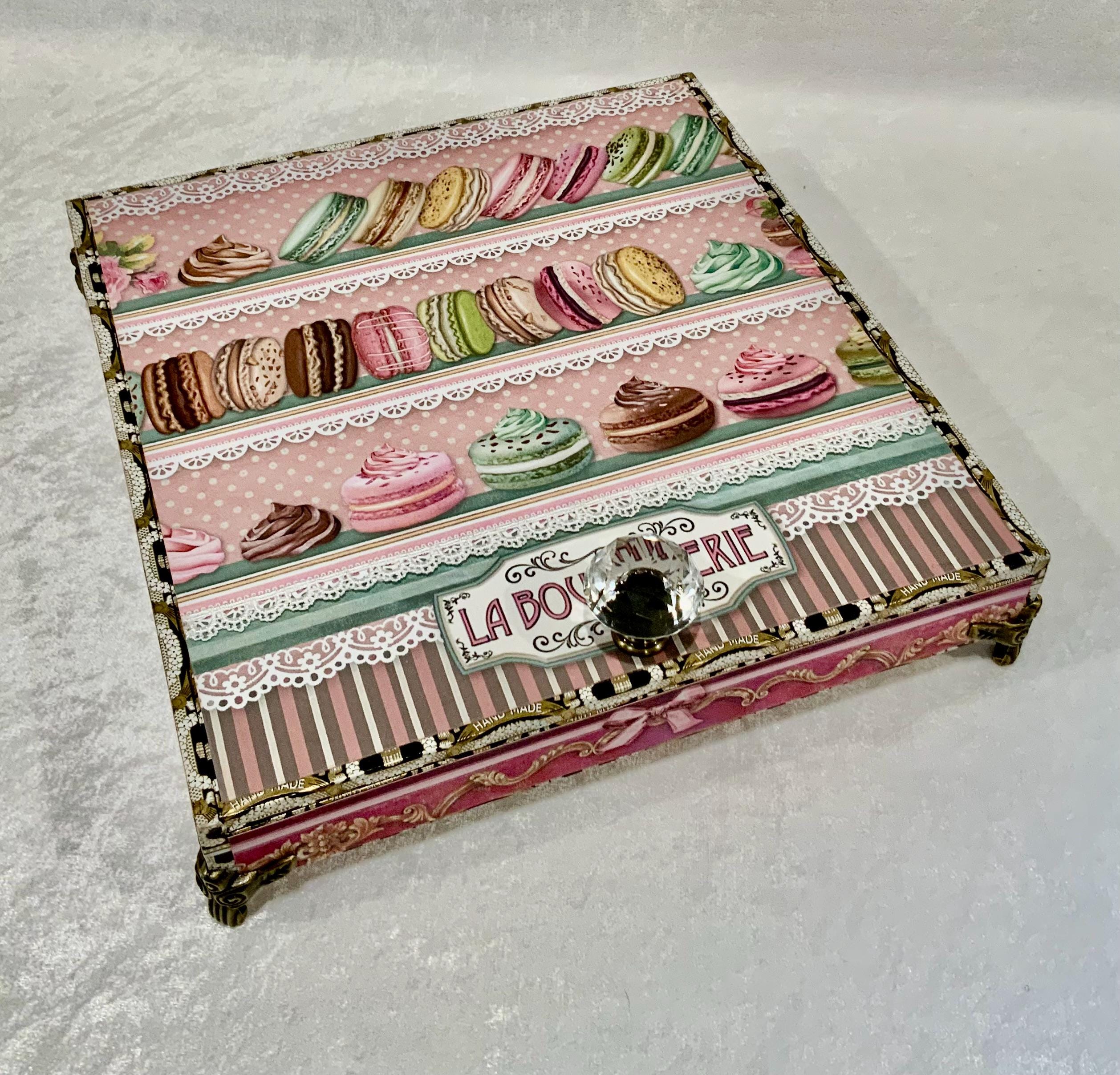 Large Patisserie Keepsake Box, Pink Macaron Jewelry Box, Romantic Dessert Decor, Gift for Her