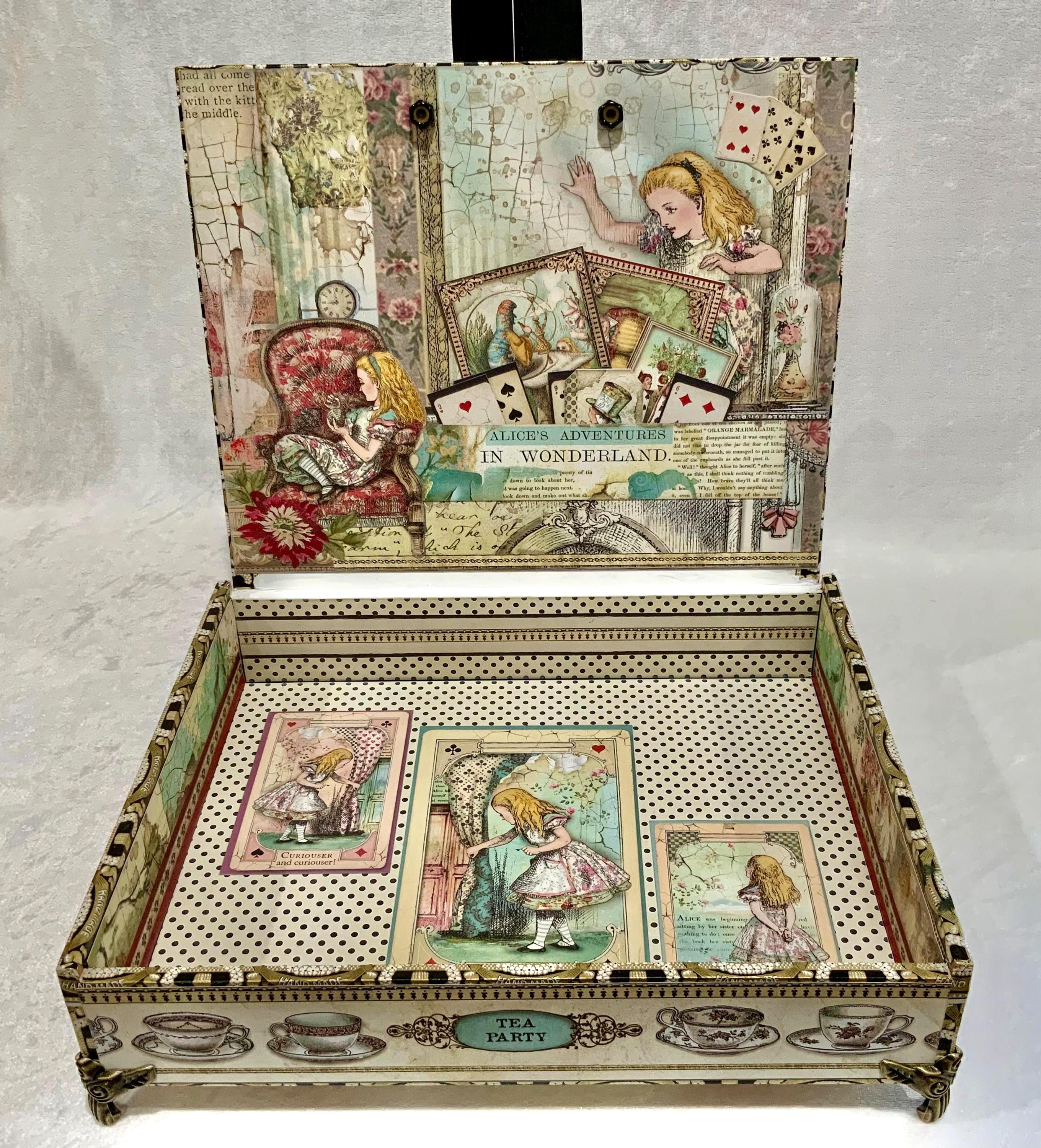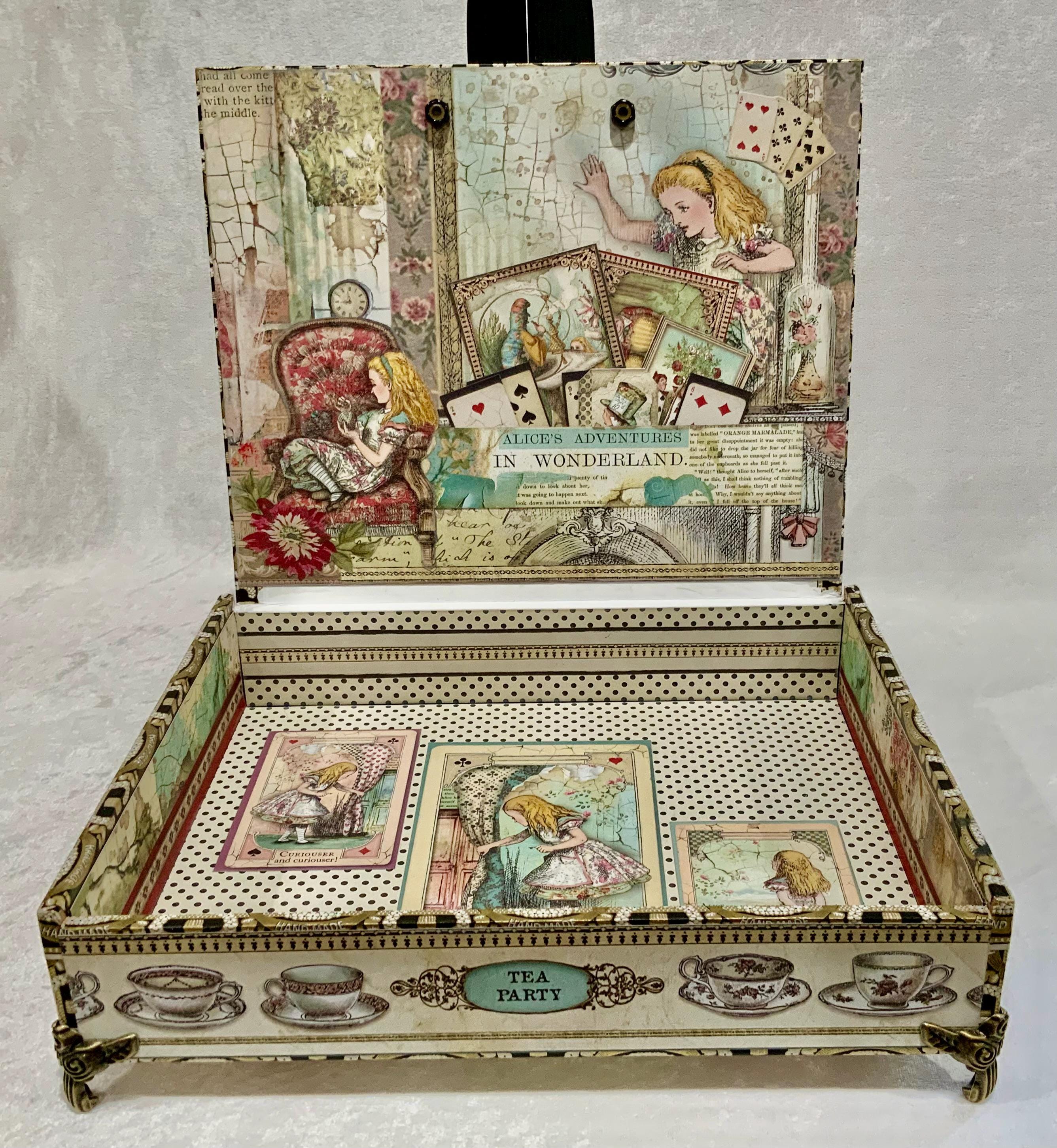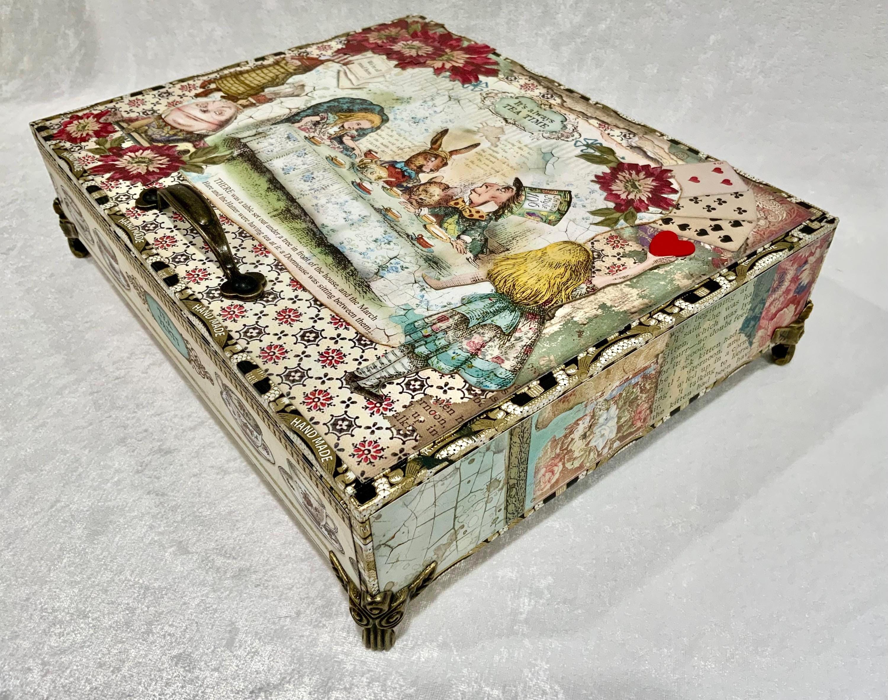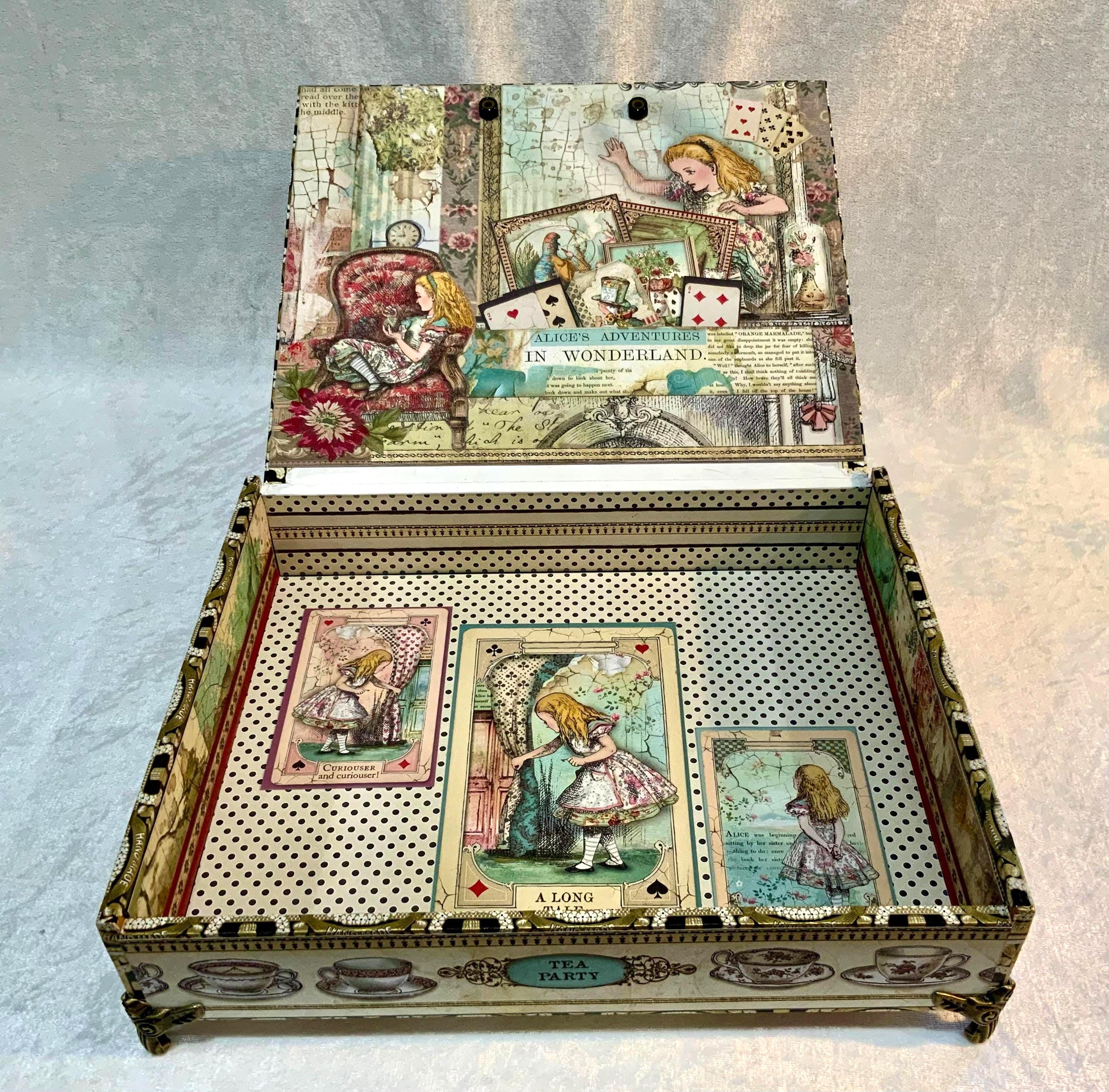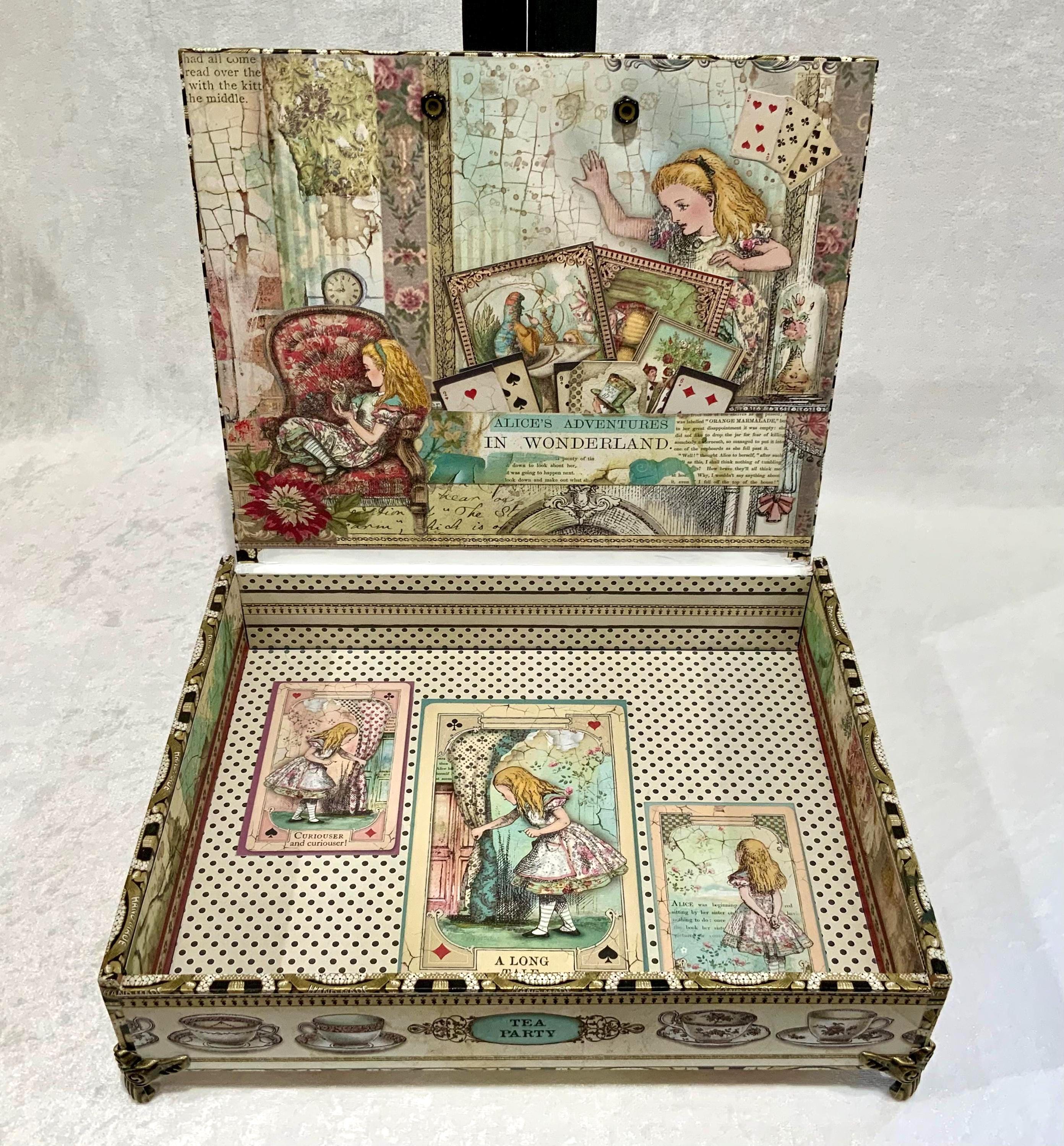 This larger version offers a little more room than my smaller Alice box and gives the design space to shine. It would make a lovely jewelry box, keepsake box, memory box, or decorative gift for anyone who loves Alice in Wonderland, storybook themes, or whimsical decor.
