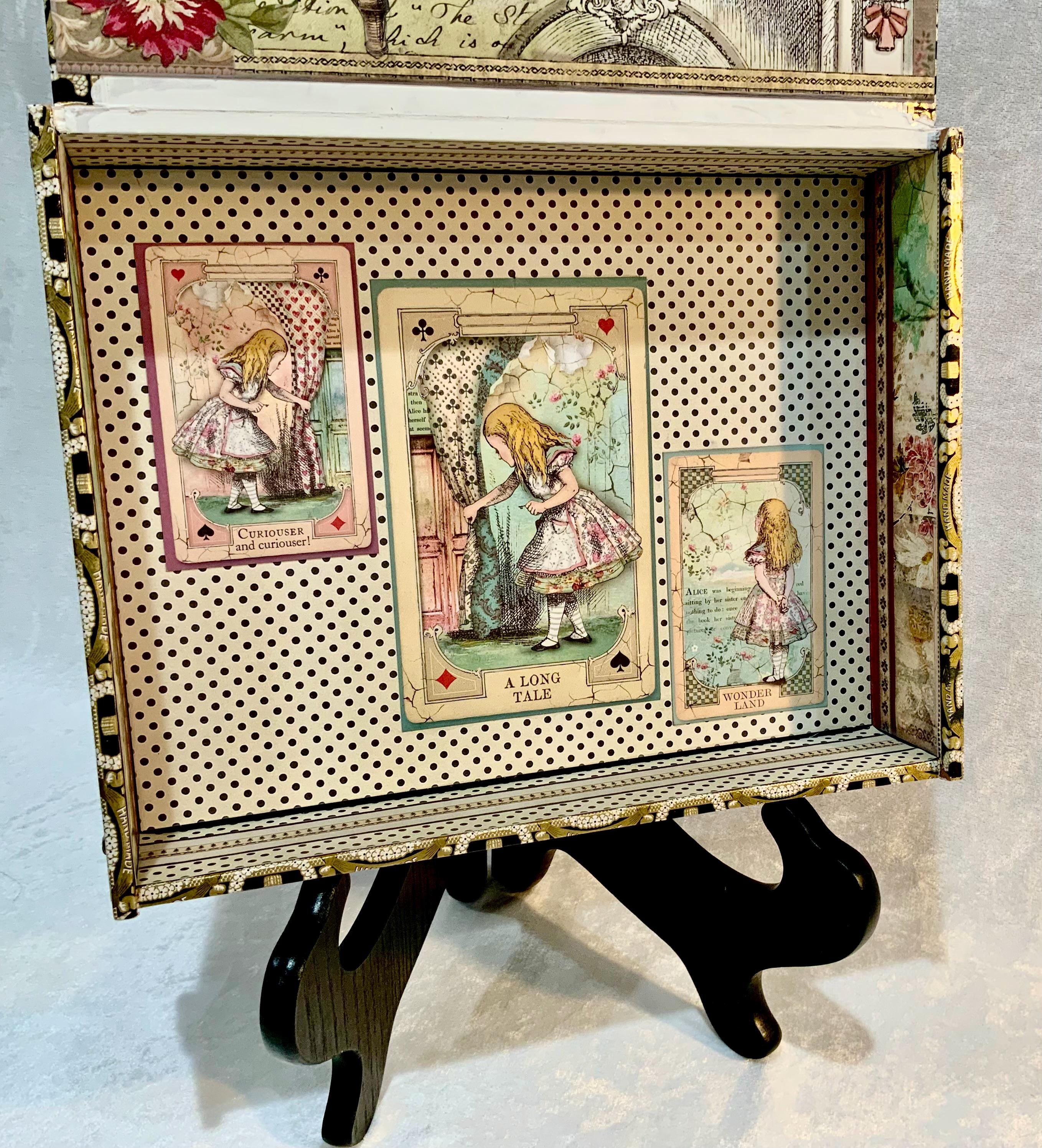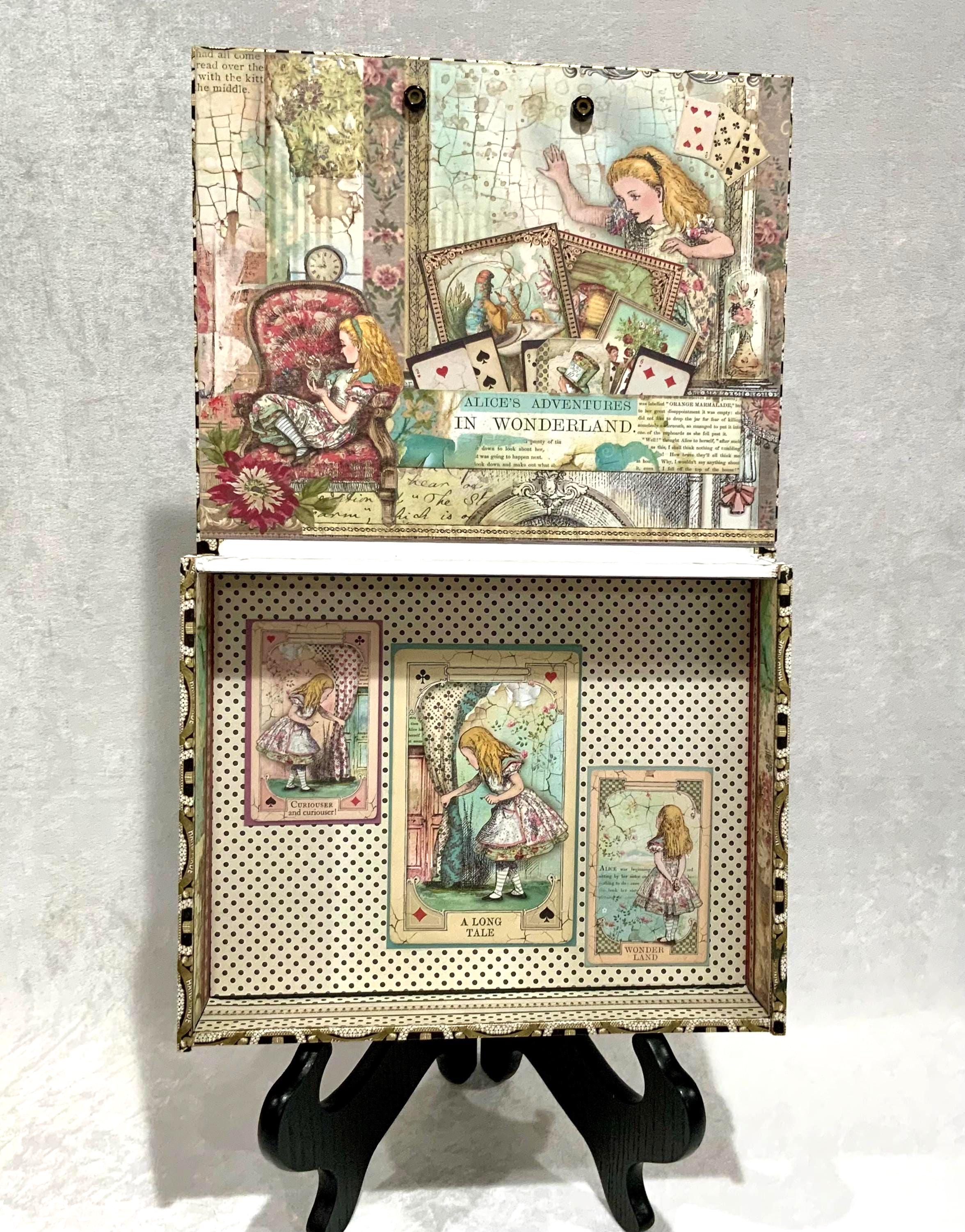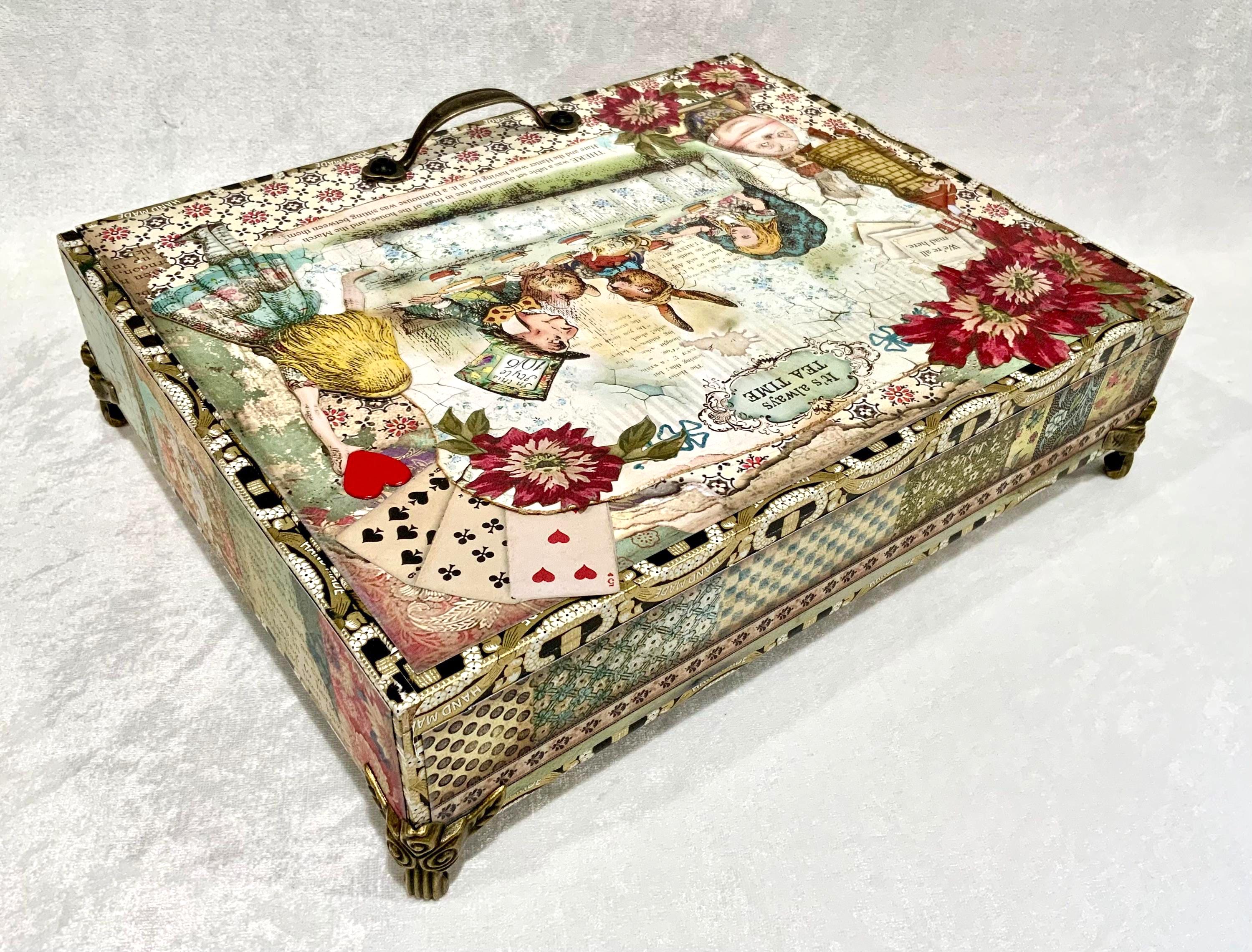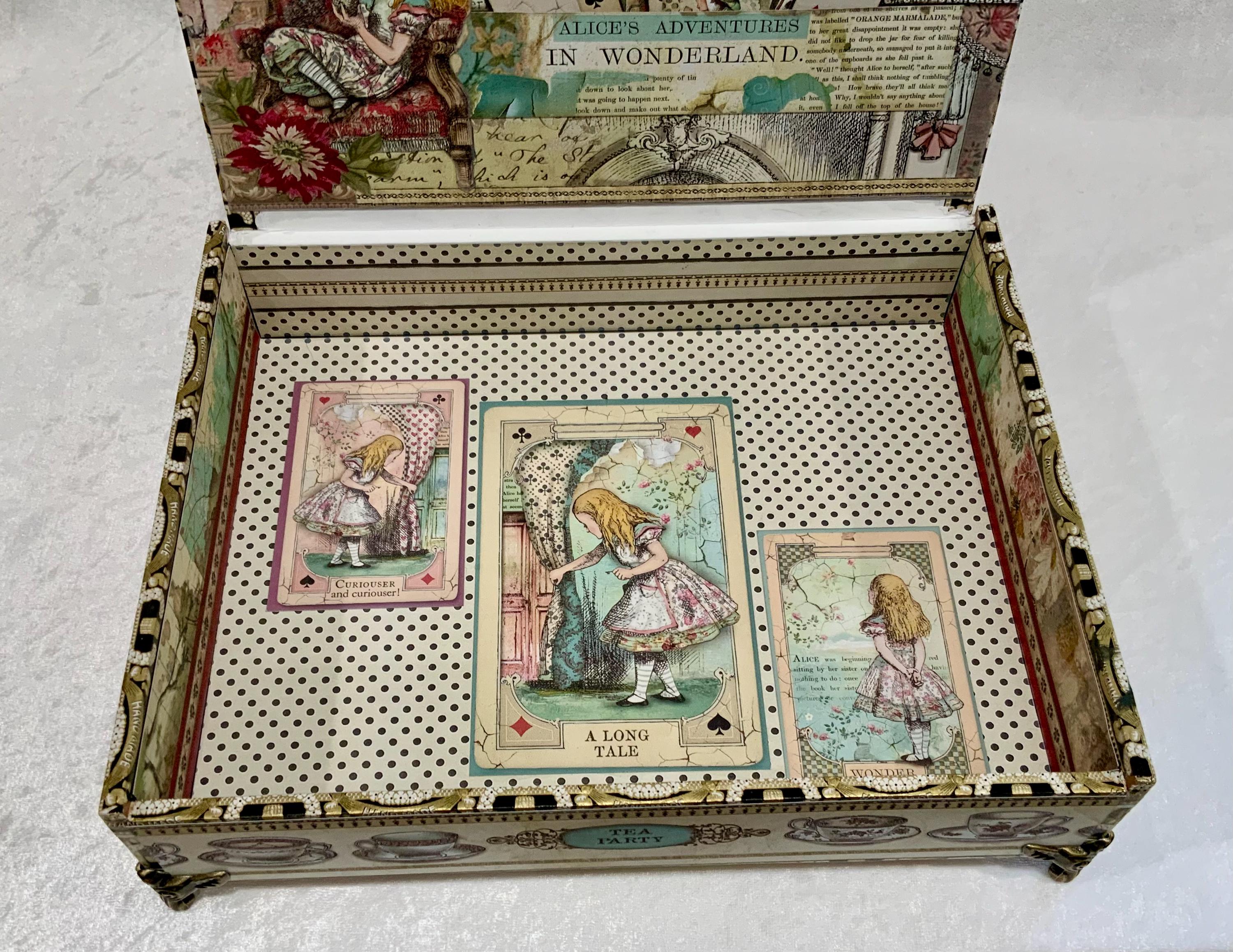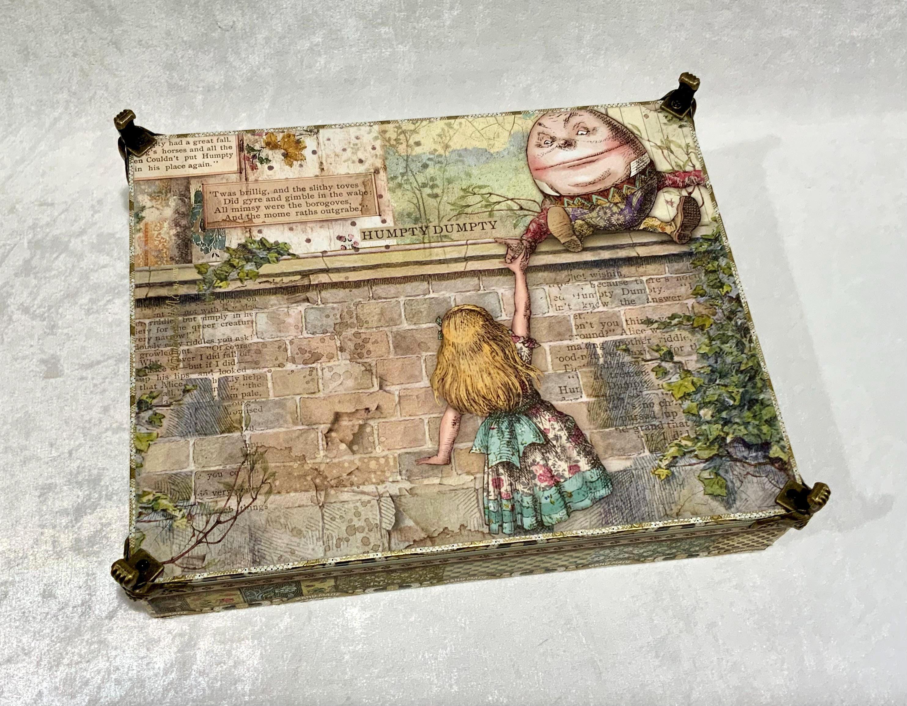 This larger version offers a little more room than my smaller Alice box and gives the design space to shine. It would make a lovely jewelry box, keepsake box, memory box, or decorative gift for anyone who loves Alice in Wonderland, storybook themes, or whimsical decor.