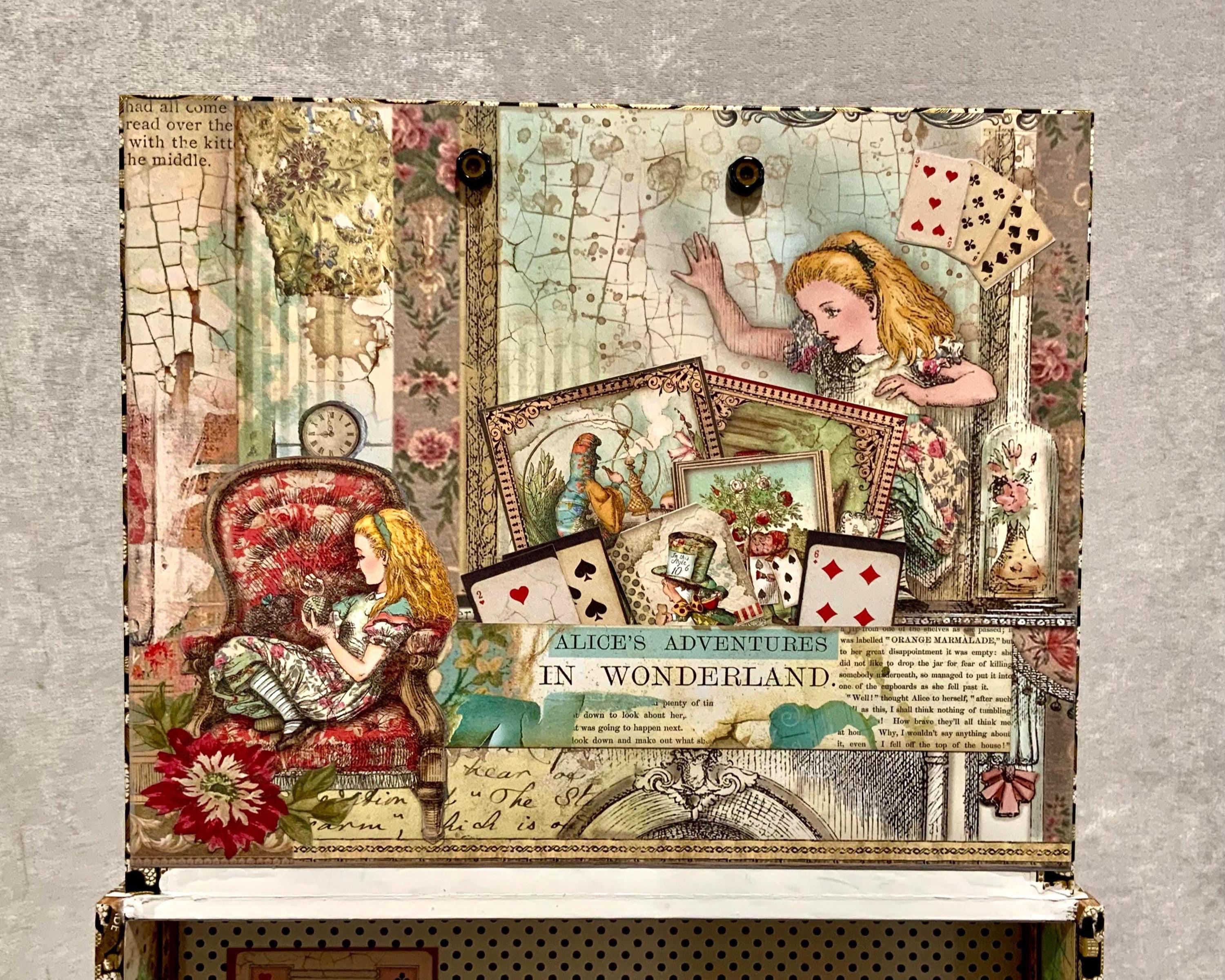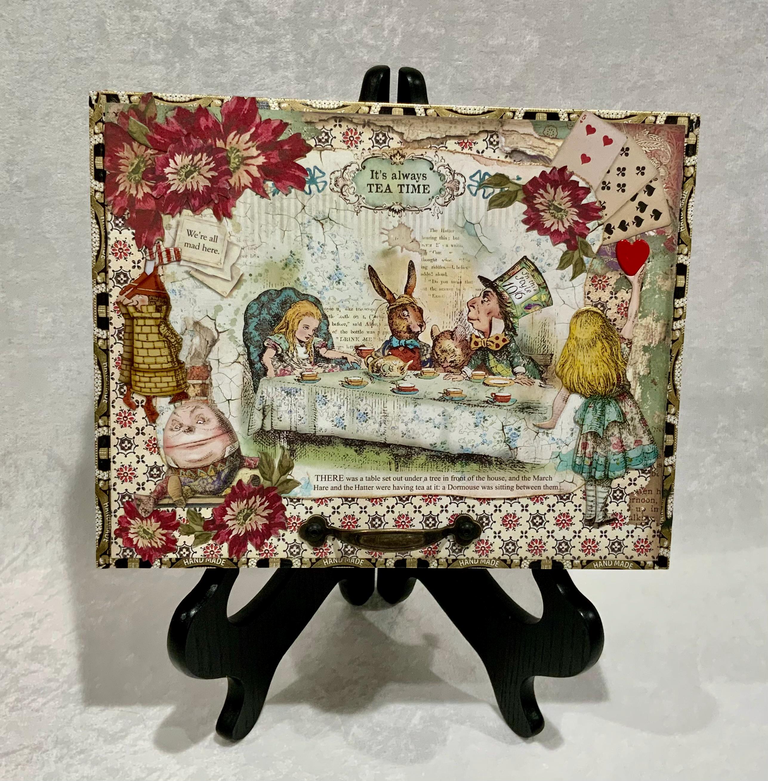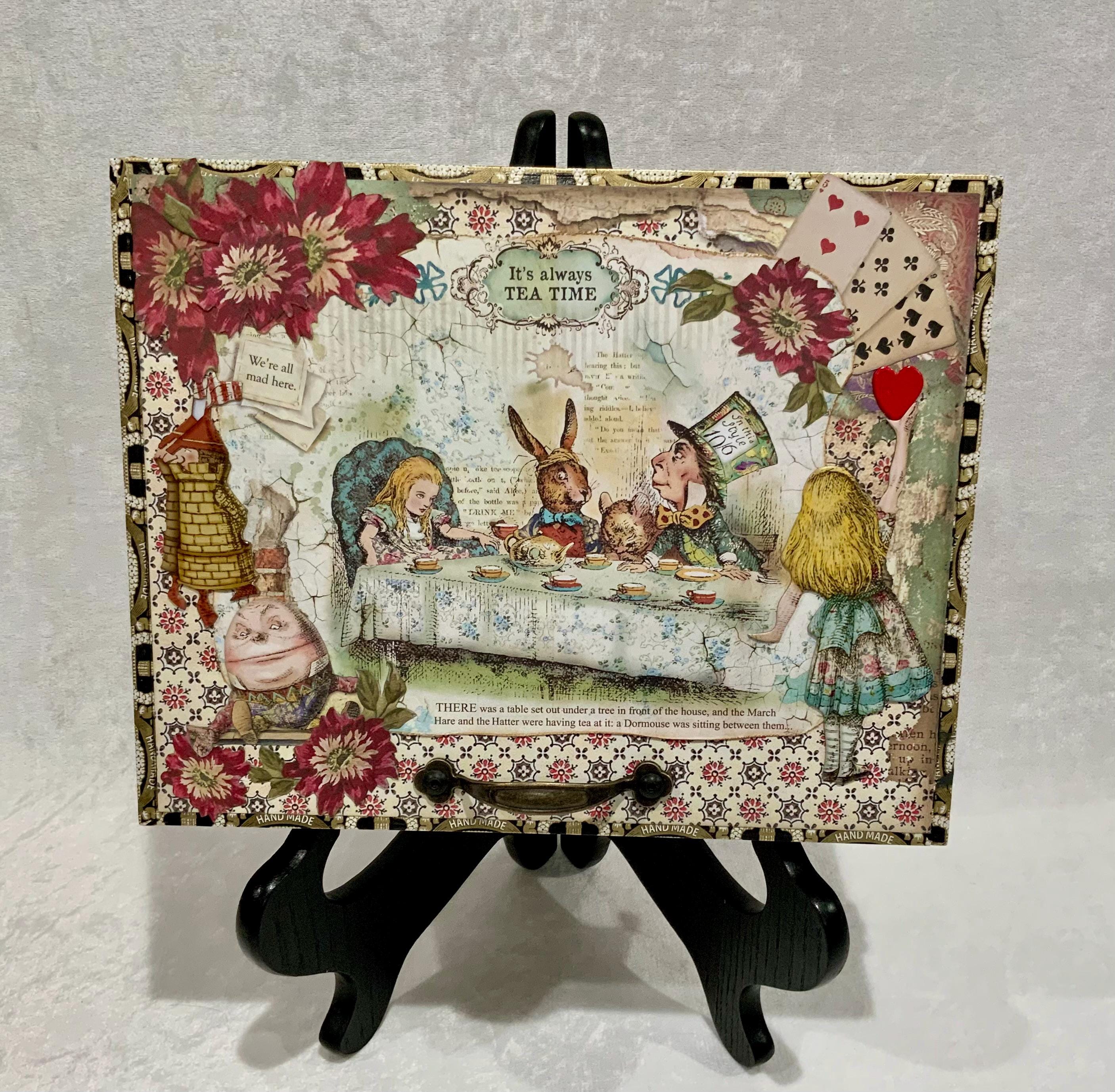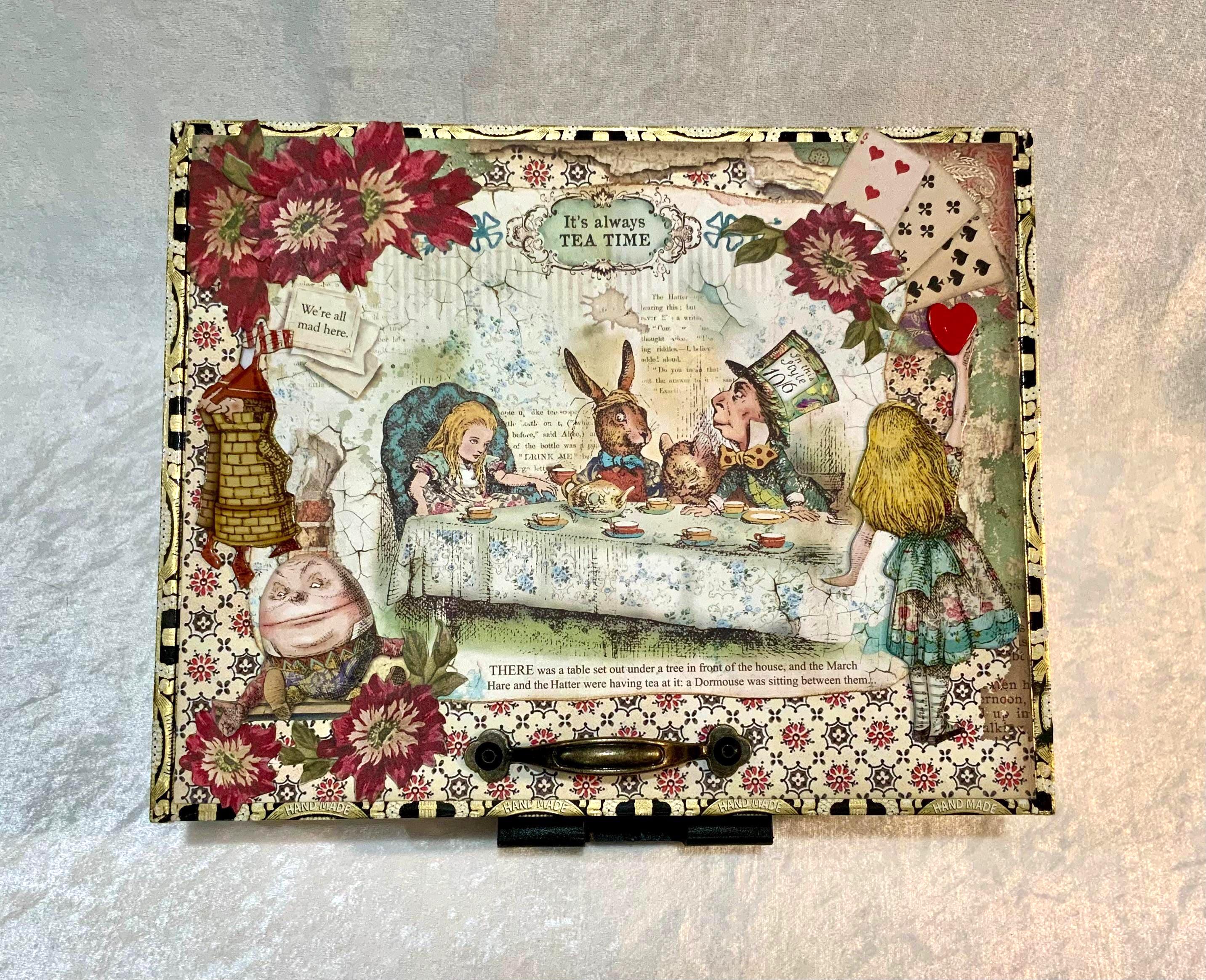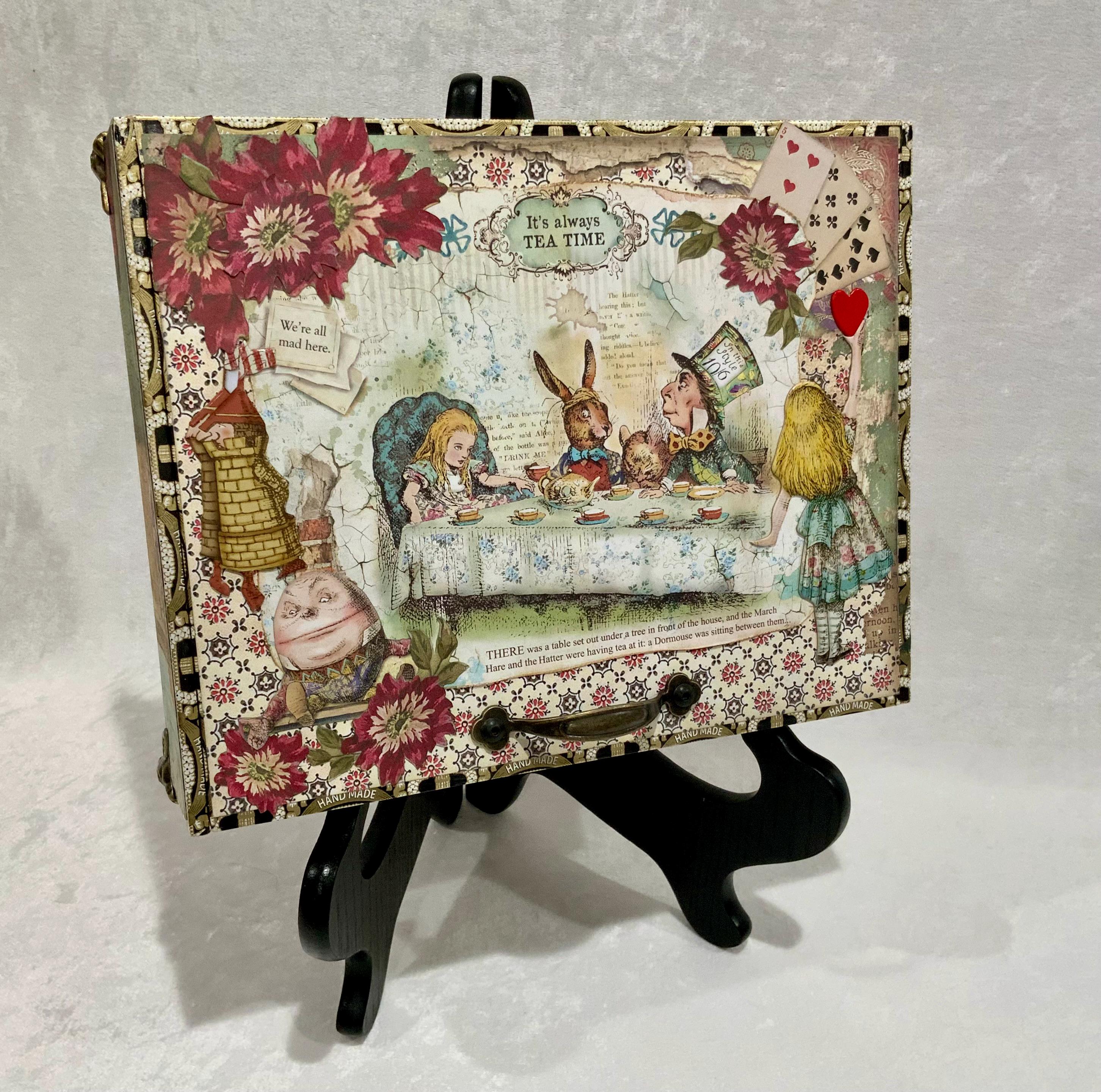 This larger version offers a little more room than my smaller Alice box and gives the design space to shine. It would make a lovely jewelry box, keepsake box, memory box, or decorative gift for anyone who loves Alice in Wonderland, storybook themes, or whimsical decor.
